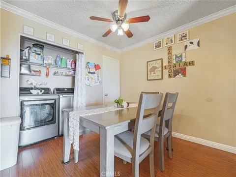 Welcome to this Beautiful Condo located in the City of Rancho Cucamonga in the Community of "Borgata"! This home features wood flooring, nice paint, granite in the kitchen and bathroom. There are 2 Bedrooms, 1 bath, large living room, spacious dining are, kitchen (which is open to living room) laundry hook up located inside! Balcony large enough to have relaxing gatherings. The community is gated, pet friendly and features of exterior in your surroundings have streams of water, paths, flower gardens. Pool area, tennis courts, BBQ Area. Gas, water, trash are part of the HOA. Unit comes with Dishwasher, Stove/Oven, Refrigerator, Microwave! Walking distance to shopping centers giving you easy access to freeways and public transportation.