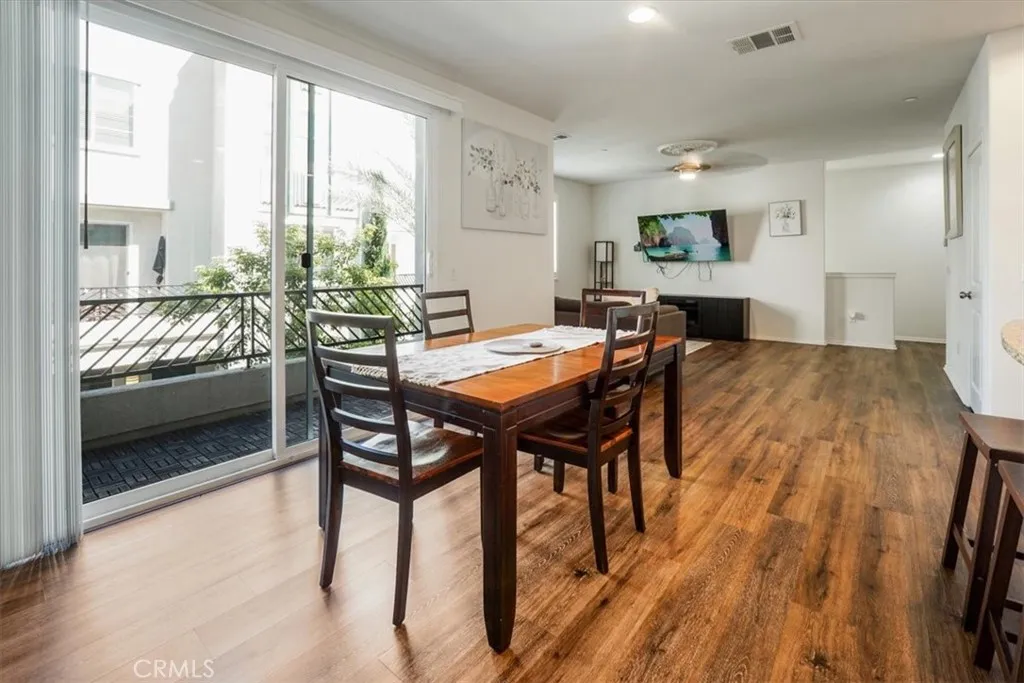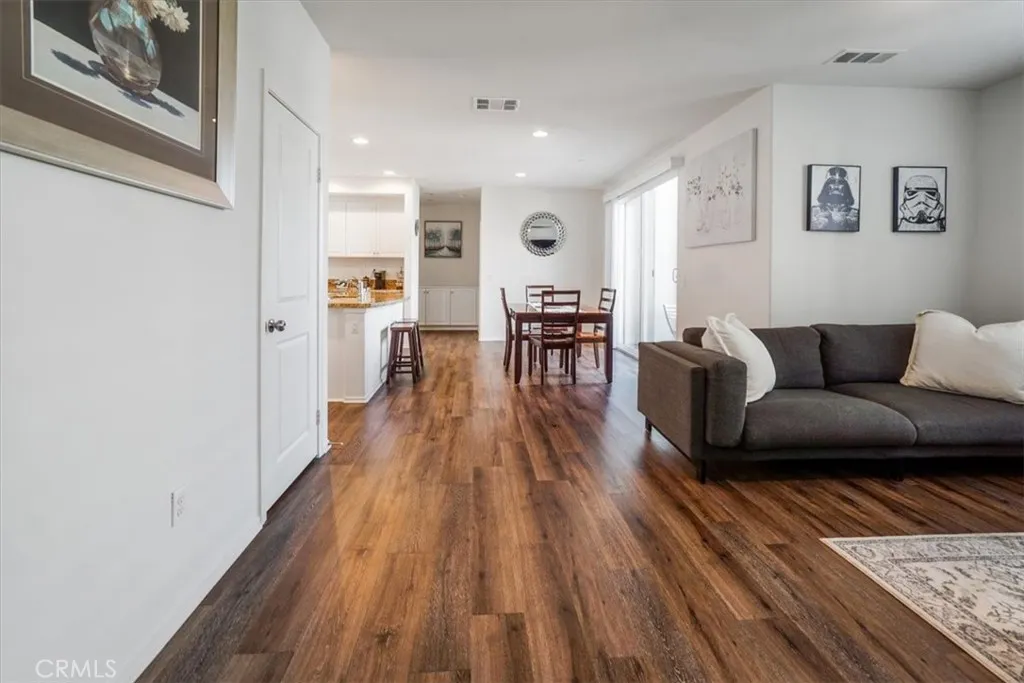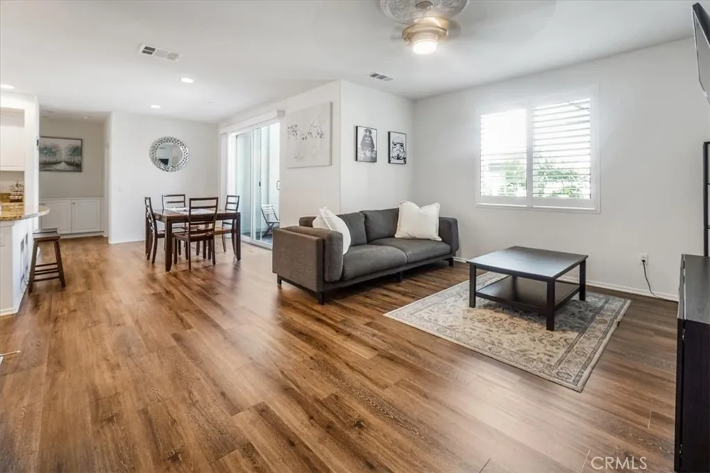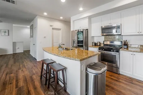 Step into this stylish 3-bed, 3-bath end-unit townhome in the coveted Orchards community. A bright, open-concept layout showcases sun-filled interiors, upgraded vinyl flooring, and a cozy second-floor balcony. Thoughtful touches include an in-unit laundry closet and an oversized two-car garage with a 220V outlet - perfect for EV charging. Commuter-friendly with easy access to the Metrolink, the neighborhood also offers scenic walking paths, a sparkling pool, and a clubhouse. Just minutes from Downtown Upland's shops, dining, and entertainment.