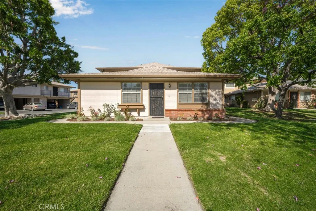 Welcome to this single level cottage style condominium perched upon a grassy knoll. This 2 bedroom 1 bathroom home has been refreshed with laminate floors in common areas with carpeted bedrooms. Light and bright with windows across it's front illuminate the living room, dining area and kitchen. The kitchen is equipped with newer laminate counters, Oak cabinets, gas oven/range and refrigerator and large pantry closet. Both bedrooms are spacious with full bathroom between them. The carport is conveniently around the corner behind the unit with 3 separate storage cabinets, yes you heard 3 STORAGE cabinets! This home is just a short stroll from one of the community pools for easy summer fun! Don't forget this home is conveniently located just minutes from excellent shopping and restaurants while being tucked away in a tranquil community.