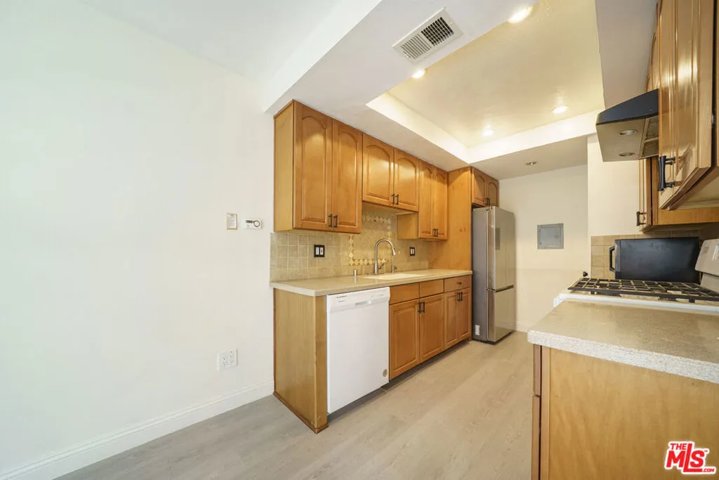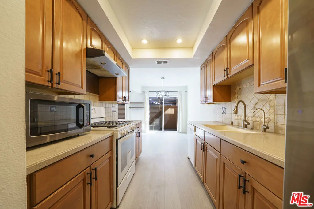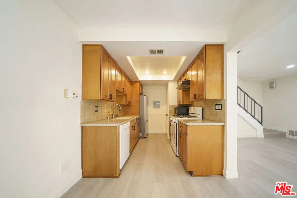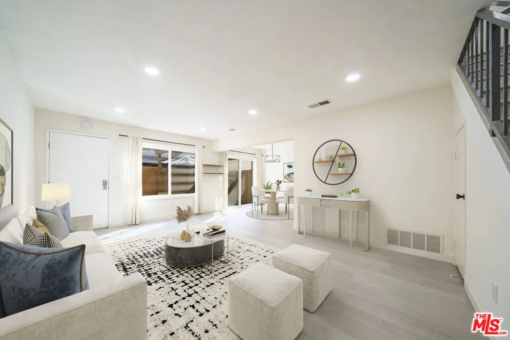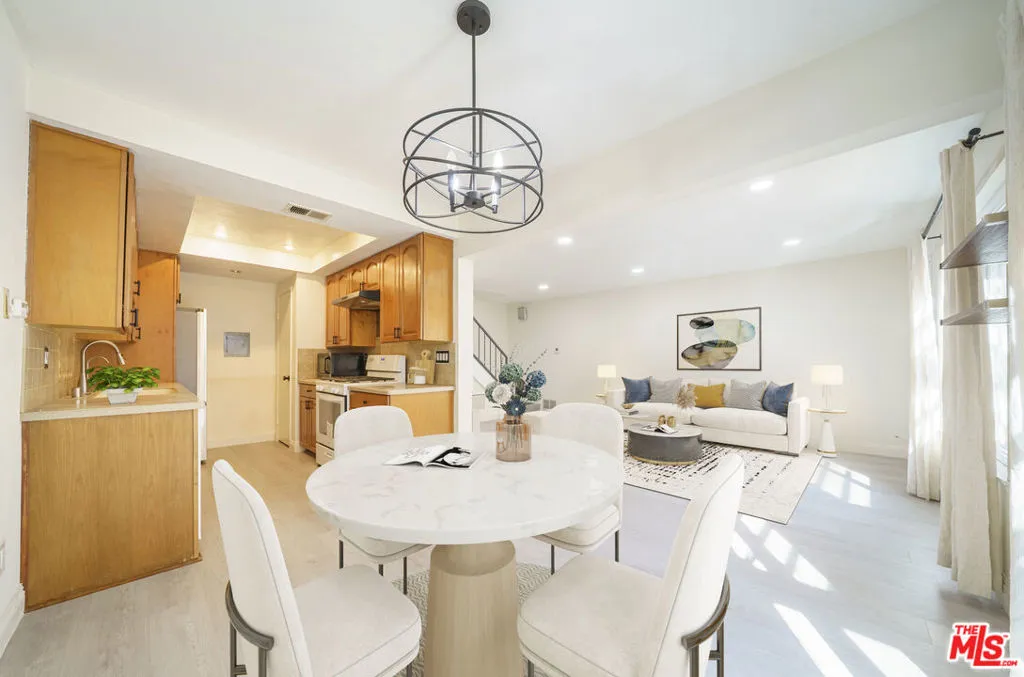 Welcome to Cerritos Villas. This private end unit feels warm and inviting from the moment you walk in. The first floor features a comfortable living room and a galley kitchen with new appliances, a pantry, and a sliding door that opens to your own covered patio.Fresh paint and luxury vinyl flooring run throughout the home, tying the space together from the downstairs living areas up the stairs and into the second-floor bedrooms and bathroom. Recessed lighting and generous windows keep everything bright and open. You'll also find dual-paned windows, mirrored closet doors, and plenty of green space in the community for walking your dog.Parking is convenient with a one-car garage plus an additional spot right next to the patio. The complex offers multiple pools and a clubhouse, and you're close to a wide range of restaurants and shopping, including Cerritos Towne Center and Los Cerritos Center.