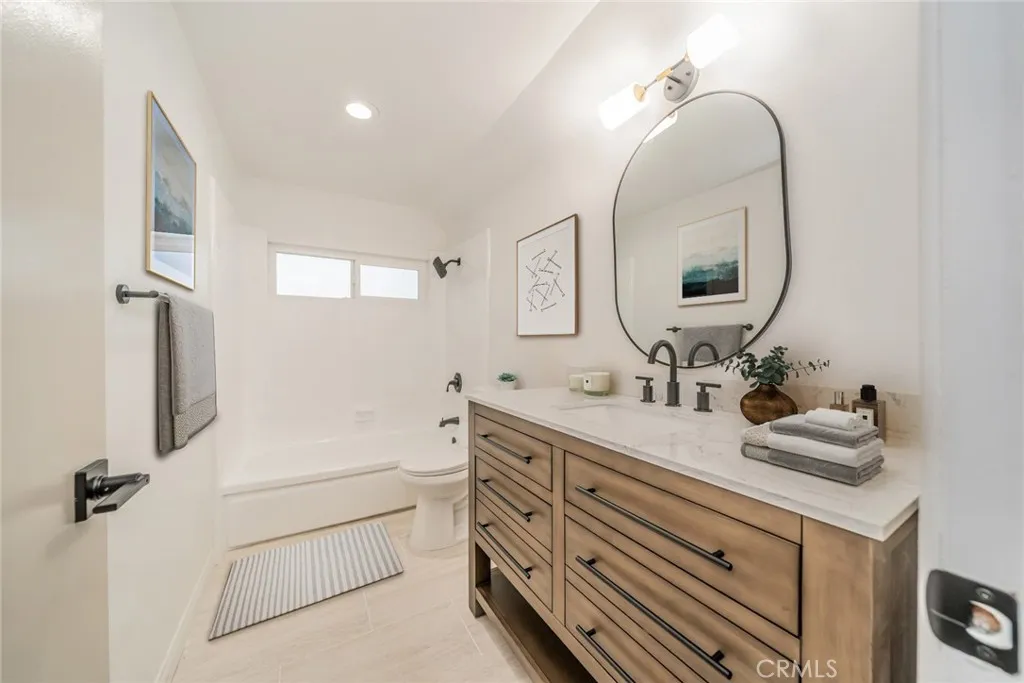 Welcome to 1270 N. Rosalind Ave., Rialto, a beautifully renovated single-family home located in the highly sought-after Northeast Rialto neighborhood. This 5-bedroom, 3-bathroom residence offers 2,150 square feet of thoughtfully updated living space on a generous 8,900 square foot lot and is truly move-in ready. The main level features two bedrooms and one full bathroom, ideal for guests or flexible living arrangements. Enjoy a spacious living room highlighted by a cozy fireplace and a large front-facing window that fills the space with natural light. The home has been freshly painted and showcases new wood laminate flooring throughout, new carpet in all bedrooms and stairs, new closet doors, and updated light fixtures. The fully renovated kitchen boasts modern chic finishes, new stainless steel appliances including a stove, dishwasher, and microwave, as well as a convenient peninsula that opens to the family or dining area, creating an ideal space for entertaining. A dedicated downstairs laundry room adds everyday convenience. Upstairs, you'll find three additional bedrooms and two remodeled bathrooms, including a spacious primary suite with its own private bathroom. Outside, the home continues to impress with freshly landscaped front and back yards, a built-in swimming pool, large driveway, and possible RV parking along the side of the home - perfect for outdoor enjoyment and added flexibility. Conveniently located near restaurants, shopping, schools, and the 210 Freeway, this beautifully updated home combines modern upgrades, functional living space, and an excellent location. *To help visualize this home's floor plan and to highlight its potential, virtual furnishings may have been added to photos found in this listing.