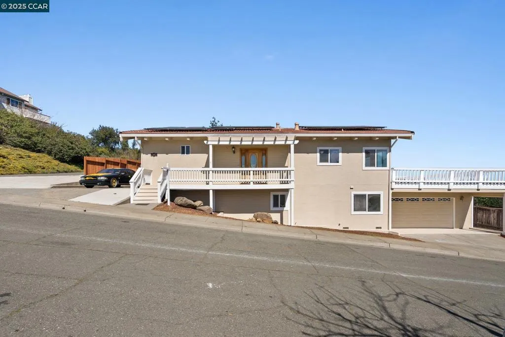 Perfect home for entertaining. Vaulted ceilings with stunning wood beams - an expansive, open concept style of living. Dining & kitchen open to a large Trex deck with panoramic views of the straits! Power ran on the deck for mounted outdoor TV for entertainment. The main electrical panel has been updated. Never be without power with solar panels and backup LG battery. The master suite on the top floor is equipped with a large spa-like shower & massive walk-in closet. A covered hot tub, & large backyard. Downstairs separate living space with added 3rd bedroom! Huge RV parking space and three driveways for your car needs or guests. Beautiful, bright, airy home ready to move in. Seller is willing to carry up to $75,000 at 3.5% for up to 2 years for qualified buyers at full asking price.