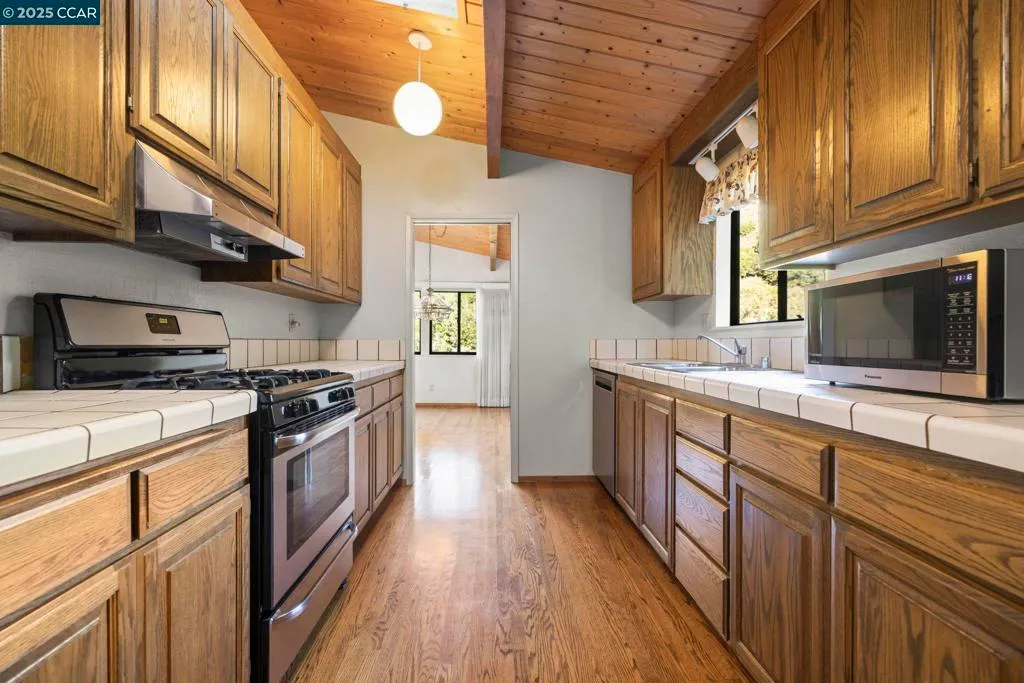 A quintessential modern home in the coveted Claremont Hills, thoughtfully positioned for exceptional privacy and sweeping views. Dramatic wood ceilings, gleaming hardwood floors, and expansive windows define the open, light-filled main level designed for effortless entertaining. The lower level offers a serene bedroom wing, highlighted by an oversized primary suite with luxurious proportions and abundant storage. A separate 1-bedroom, 1-bath apartment - complete with its own entrance, parking, and laundry - provides ideal flexibility for extended family or additional income. Just minutes to the best of Berkeley, yet a peaceful world apart.