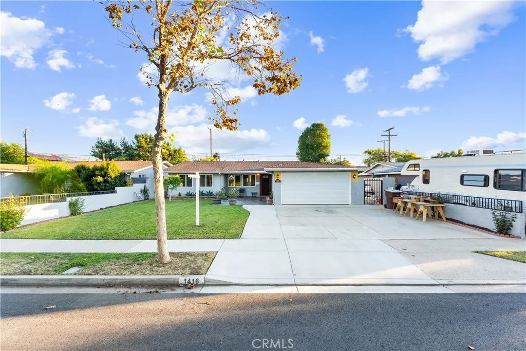 Sharp and spacious single-story home in a prime Anaheim location! Lovingly maintained, this residence features an upgraded kitchen with quartz countertops, soft-close cabinets, and pull-out pantry shelves. Fresh paint, new carpet, and beautiful linoleum flooring create a move-in ready feel. The primary suite includes its own bath, accompanied by three additional bedrooms and a hall bathroom. Upgraded windows, newer front and back doors, an extra-wide driveway with RV potential, an EV charger, and an upgraded electrical panel add convenience and value. The main sewer line has been lined for peace of mind.Enjoy a large backyard with mature citrus trees, a covered and enclosed patio, plus a unique fallout shelter. Out front, the pretty slate stone entry and covered patio provide the perfect spot to relax. Homes like this don't come along often - don't miss this opportunity!