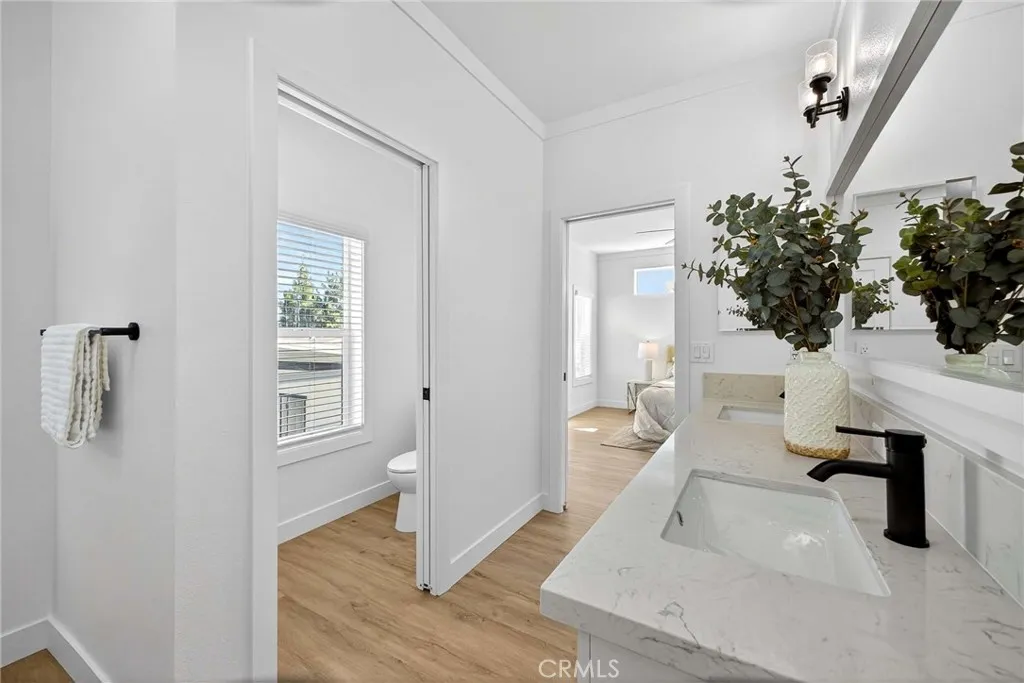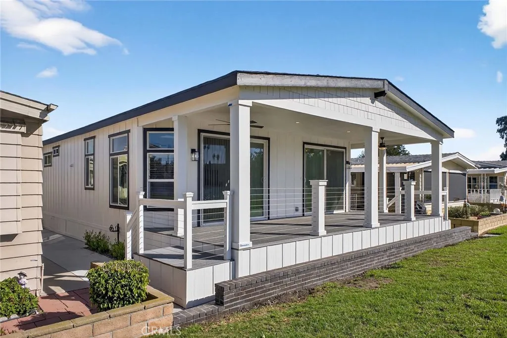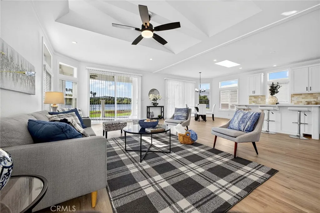 Experience lakeside living at its finest in the serene 55+ community of Lake Los Serranos-where every day feels like a vacation. Enjoy peaceful mornings on the oversized porch overlooking the water. This bright and open floor plan offers an abundance of natural light from skylights and large windows throughout the home. The chef-ready kitchen features a quartz island, stainless steel appliances, and a walk-in pantry. The generous primary suite includes a walk-in closet, dual vanities, and a walk-in shower. Two additional guest bedrooms and a utility room with side-by-side laundry hookups provide extra comfort and convenience. Additional highlights include a covered carport with easy parking and access to active community amenities such as a pool, spa, and scenic walking paths.