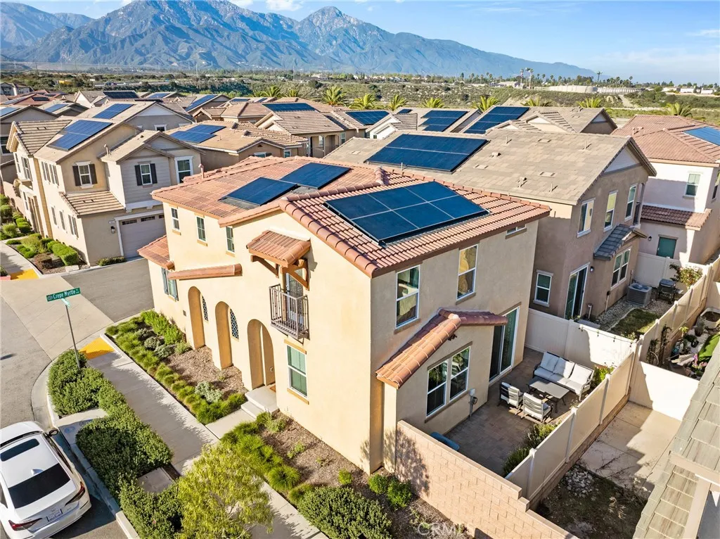 BUYER INCENTIVE! Seller will cover HOA fees for the FIRST YEAR!! A rare offering in this community. Modern Living in Montara at Sycamore Hills! Don't miss your chance to own this beautifully upgraded detached townhouse in the highly desirable Montara at Sycamore Hills community. Built by KB Home and ENERGY STAR certified, this residence combines stylish design, energy efficiency, and a prime location. The first level features a bright and open layout where the living room, dining area, and gourmet kitchen flow seamlessly together - perfect for entertaining guests or relaxing at home. A convenient half bath completes the main floor. Upstairs, you'll find a luxurious primary suite with an en suite bathroom featuring dual vanities and a spacious walk-in shower. Two additional bedrooms, a full hall bath, and a dedicated laundry room provide comfort and convenience for the entire household. This home also offers soaring ceilings, abundant natural light, a private patio for outdoor enjoyment, and an attached two-car garage with direct access to the kitchen. The included solar system helps reduce energy costs, adding even more value. This property offers the perfect blend of comfort, convenience, and California lifestyle. Situated just off Baseline Road between Interstates 10 and 210, this location offers seamless access to major employment centers, Ontario International Airport, and top-rated schools, including The Claremont Colleges. Enjoy nearby shopping and dining at Colonies Crossroads and Whole Foods Market, or take a short drive to Angeles National Forest and Mt. Baldy Resort for year-round outdoor recreation.