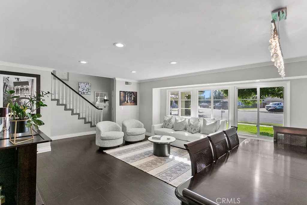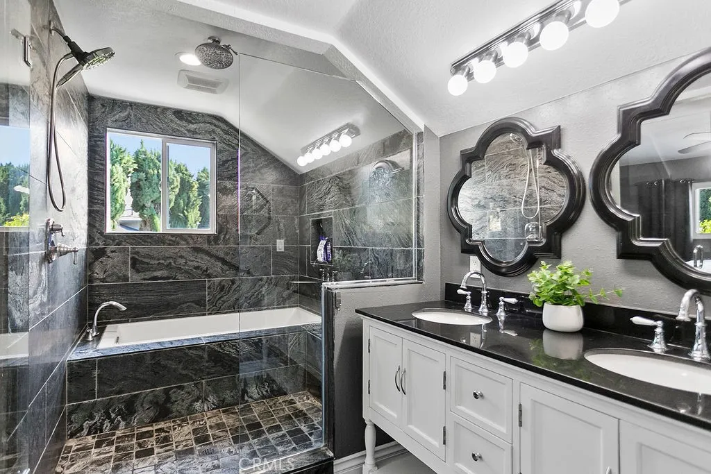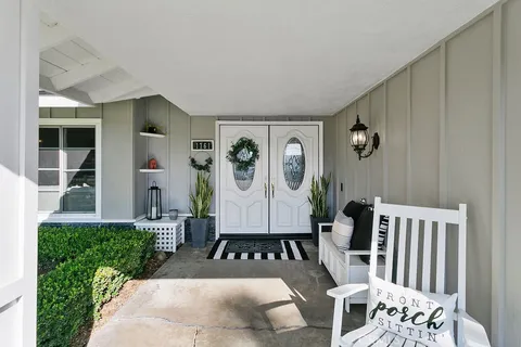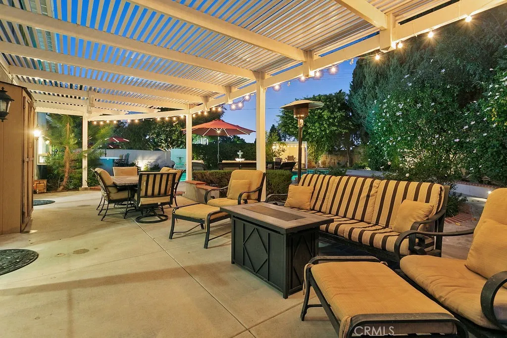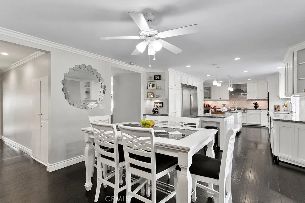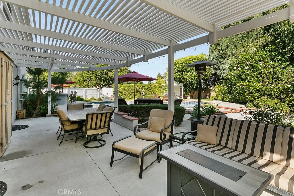 Located on a quiet and tranquil cul-de-sac, this elegantly crafted estate is exploding with upgrades. Situated on an expansive 10,000 square foot lot, and boasting almost 2900 square feet of living space, this masterpiece is the perfect blend of luxury living and outdoor charm. Enter through double glass inlaid front doors into a light bright entry. Dark wood floors and custom base and case give the entry an open and inviting feel. The kitchen is laid out in open concept with the spacious family room for that perfect great room feel. High end SS appliances, double island, glass inlaid uppers, two sinks (prep and main), and scenic picture window of the resort like back yard make this kitchen the benchmark for culinary excellence. The family room is spacious, and rear loaded with multiple access points to the backyard, giving the home a true California indoor outdoor feel. Built in custom cabinetry and stone fireplace surround give the family room a warm and inviting feel while also maintaining an opulent and design conscious feel. The formal living room is sprawling with room for 10 top dining, and plenty of room for full formal sitting set up. A huge picture window bay provides tons of natural light a a perfect view of the quiet cul-de-sac. The primary bedroom is spacious and elegantly finished with dark walls contrasting neatly with crisp base and case. The open primary bath is finished with dual vanities, walk in shower, large soaking tub, seamless glass enclosure, rain head and wand shower, and private water closet. The secondary bedrooms are elegantly appointed with spacious layouts, upgraded base, ceiling fans, floating shelves, and large windows for plenty of natural light. And possibly the crown jewel of the property is the sprawling resort like back yard, complete with covered patio, sparkling pool and spa, built in outdoor kitchen w/ SS pizza oven, BBQ, and giant bar top seating peninsula. The sprawling patio has plenty of space for full outdoor dining AND lounge area for those big game days and nights. Other great features include spacious finished garage, downstairs bedroom w/ bathroom proximity, solar panels, recessed cans, separate indoor laundry room, fully renovated secondary baths, grassy area, fountain water feature, and spacious driveway with extra parking space. Call for additional details!