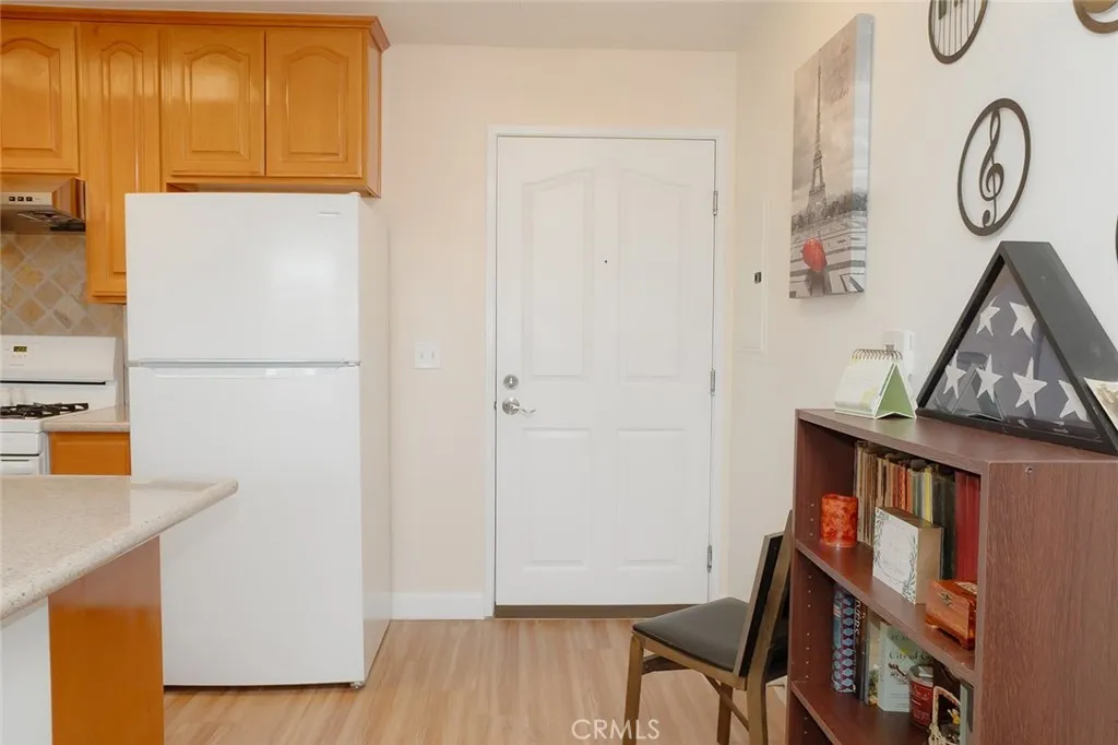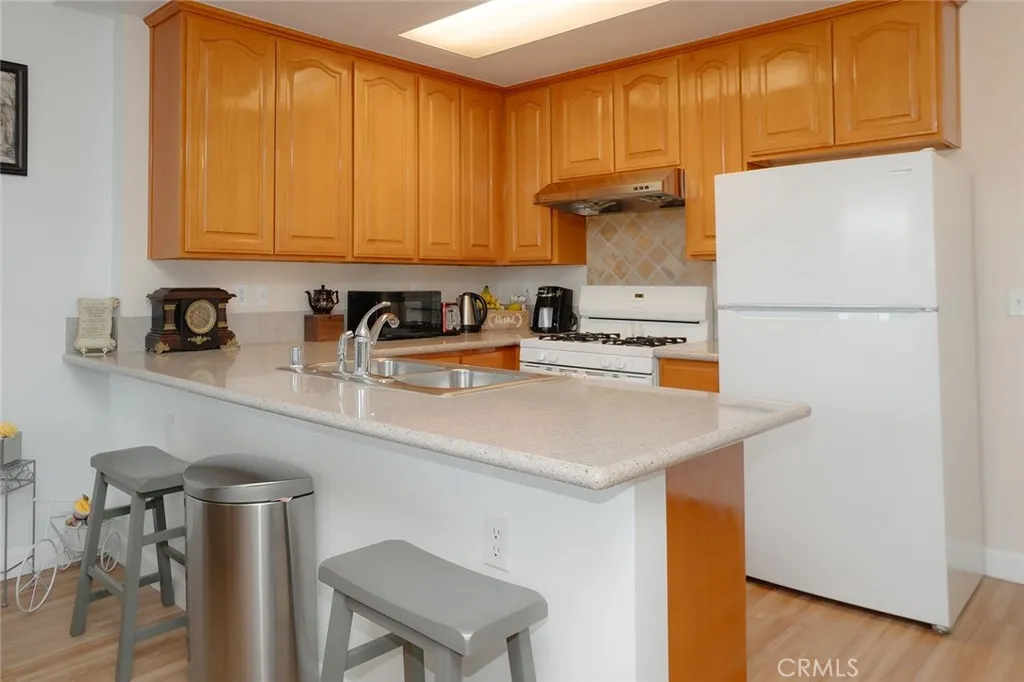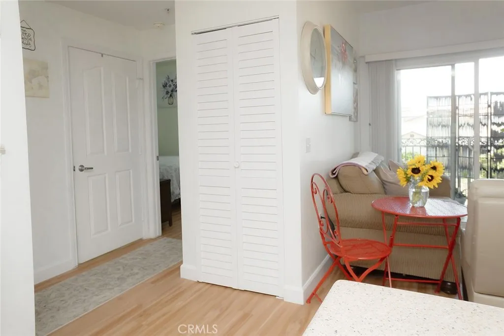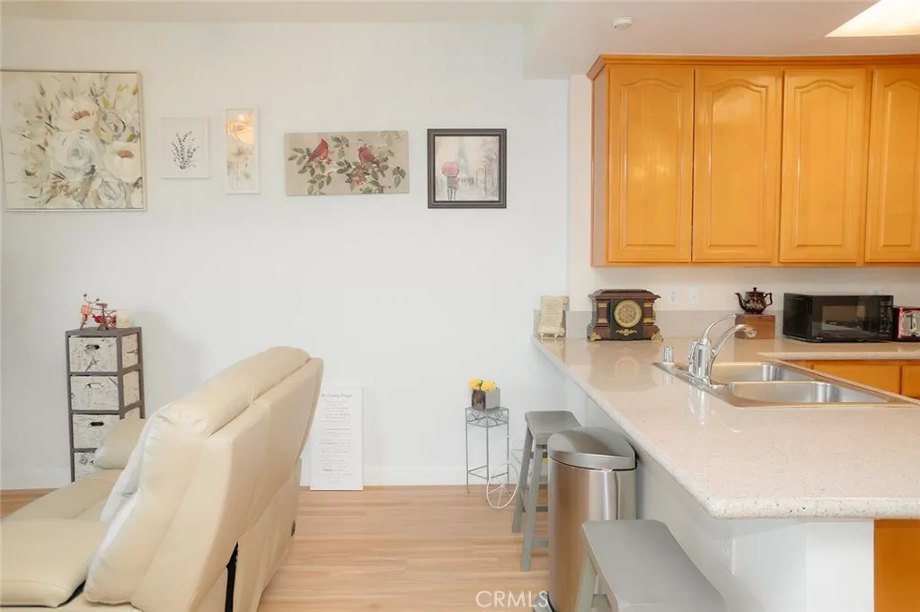 Welcome to this 55+ SENIOR Community with only 62 units that RARELY come available. This beautiful, nicely upgraded 2Bed/1Bath upper corner unit is in the quiet and gated community of New Man Horizons . This hidden gem is tucked between a residential neighborhood and the Oasis Shopping Plaza which the community provides secured access into the Plaza for residents (no driving needed to grocery store, banks, restaurants, etc.!) The interior space boasts Smooth High Ceilings, Recessed Lights, Central Heat/Air, Dual Pane Windows and Laminate Flooring. Your Kitchen has custom lacquered cabinetry w/Granite Countertops and large breakfast counter. NEWER Frigidaire Refrigerator, Dishwasher and Gas Oven with a Stainless Hood Vent w/lights, tile backsplash and Stainless Sink. Both bedrooms are good size with raised panel closet doors and faux wood window coverings. Your bathroom is very spacious and is in-between the bedrooms giving additional privacy to each room. The bath area LARGE and has a step-in shower with tile walls, stained glass window, a high-boy, and vanity. The living room has a ceiling fan and slider door to your sitting balcony. Patio deck has ceramic tiles and is large enough for a small table and chairs for morning coffee. A Front-Loading LG Washer/Dryer is included. ***ADDED BONUS***: The unit has fire sprinklers and a built-in emergency response system that notifies First Responders in the event of an emergency inside the unit. HOA amenities include landscaping, grounds maintenance and a clubhouse/recreation room. WATER, TRASH, SEWER & INTERNET ARE PAID BY HOA. Property includes 1-Car covered carport space (that is steps from unit) with large storage cabinets **Space 59** which you can see your Carport Space from your bedroom window. You can go up the exterior stairway to get to unit OR you can enter the glass doors on lower level and take the ELEVATOR upstairs. (See Pic #4 for visual directions). Building has a lovely Foyer entry with community mailboxes and elevator. Complex is fully gated (including the parking and carports) for added security. Adjoined Plaza includes 99 Ranch Grocery Market, coffee shops, eateries, Bank, UPS Store, retail stores and an outdoor seating area by fountain to relax & read in the sunshine, steps from the unit. The landscape is well maintained, with nice walking paths, lush foliage and palm trees. Complex borderlines Orange County and is less than 5 minutes to Cerritos Mall and the 605 & 91 Fwy.