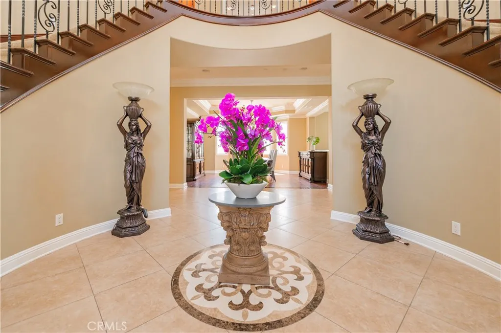 This home is Allencia Manor model built by Toll Brothers with hard to find Catalina views, the highest levels of luxury living, Featuring 5 large bedrooms including a guss room downstairs en suite, plus a bonus imtertament room, library, and exercise yoga room, this floor plan provides all parts of the family you needs. The Double beveled glass doors lead you into the grand entry with double iron staircases. Elegant Designer Crown Moulding is adorned across the ceilings throughout of this 5 star estate. The Gourmet Kitchen features 6 burner cooktop plus griddle, Double Ovens, warming drawer, Built in Refrigerator, and Built in Microwave along with beveled glass walk in pantry, those appliances are toll prother spencial choced. The extensively hardscaped backyard provides resort like amenities with covered loggia and outdoor fireplace along side the sparkling pool and spa with water features. A built in BBQ island, with bar top seating is conveniently located for entertaining. Outside you can also find a basketball area for the kids.Also walking distance to great yorba Linda High school.
