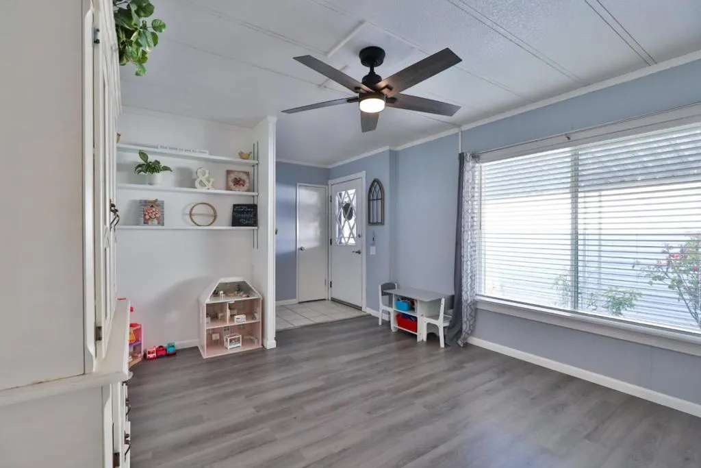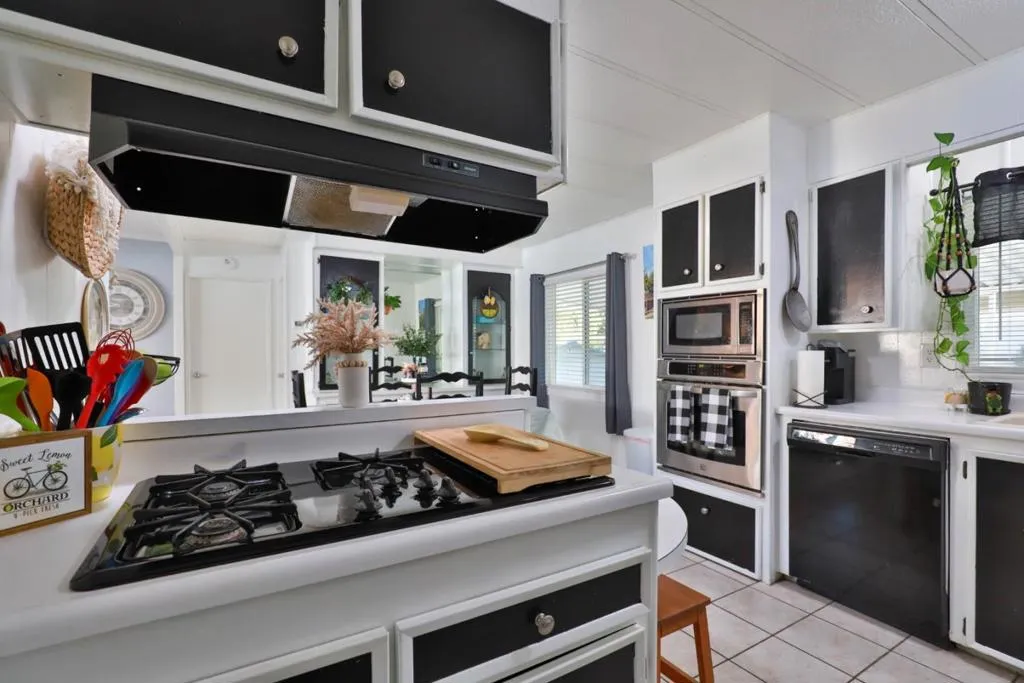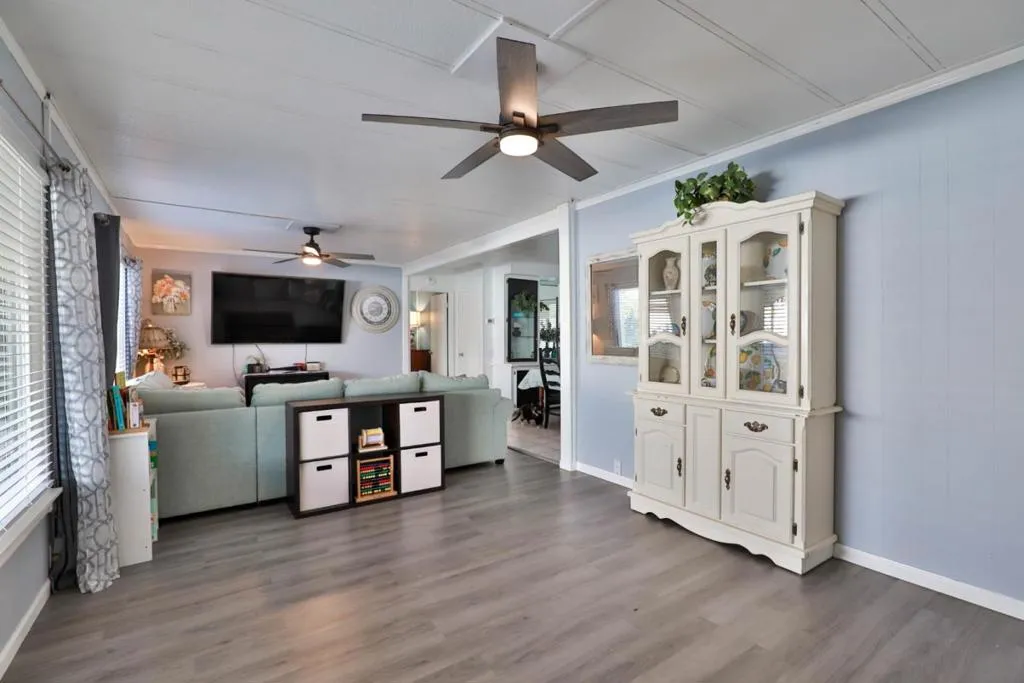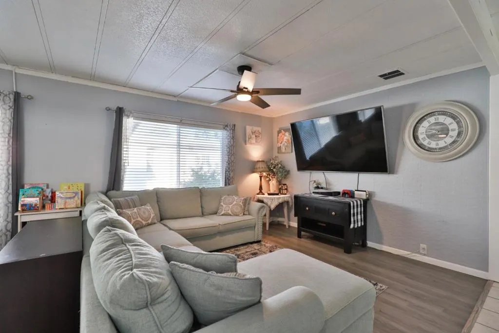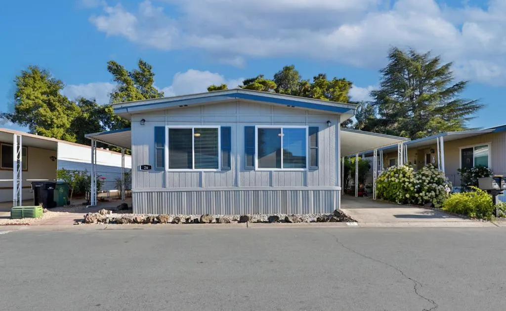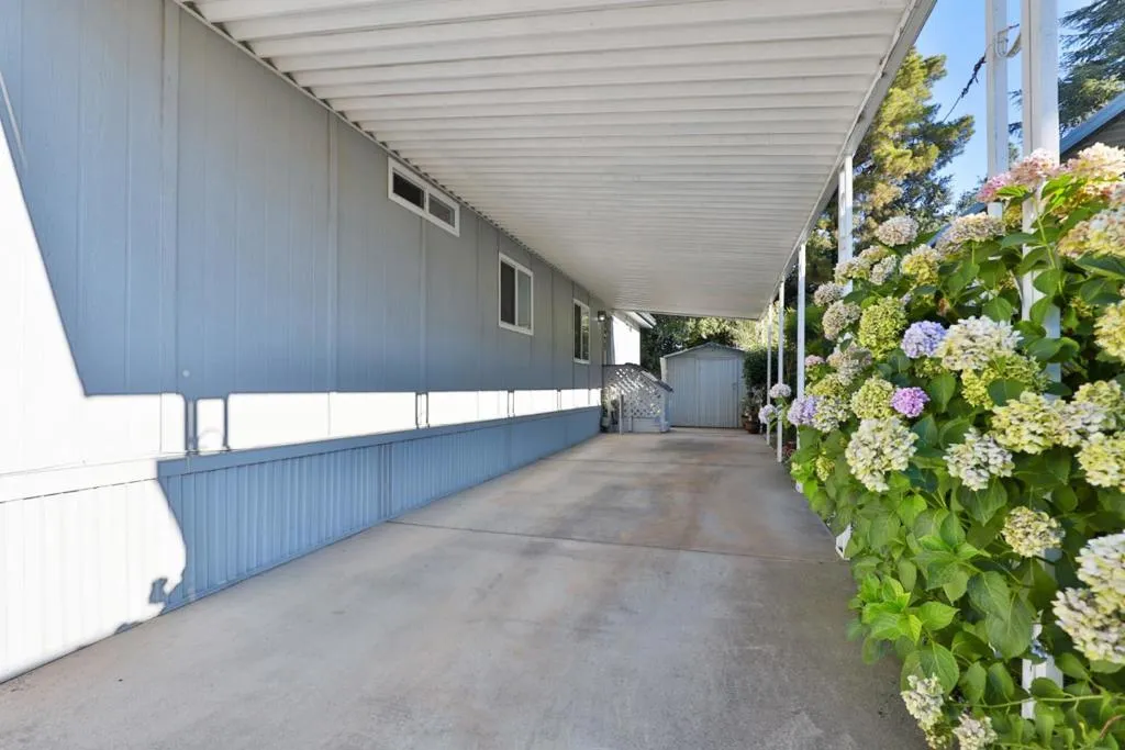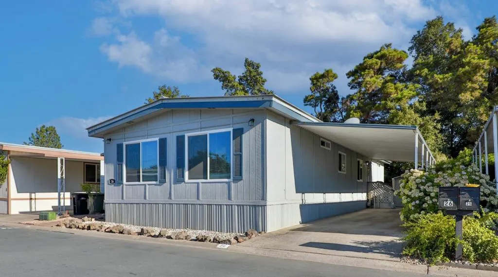 250 Off Space Rent per month for the first year! Get moved in and through the holidays with a little help from the sellers! Move-In Ready bright and cheerful home tucked inside a well maintained all ages park, Surrounded by the vineyards of Lodi's celebrated wine country. From the moment you step up to the charming entry, you'll feel right at home. Inside, the spacious layout is designed with both comfort and privacy in mind. The primary suite is positioned at the rear of the home, featuring a large ensuite bathroom and shower over tub. A newly installed sliding door leads to your own private garden, recently landscaped with in-ground lemon tree and no rear neighbors! Up front you'll find two additional bedrooms and a stylishly updated full bath. The living room is filled with natural light pouring in through the oversized dual pane windows and rustic-modern ceiling fans add character and comfort. The heart of the home is the black & white themed updated kitchen boasting stainless steel appliances which opens to the dining area and its built-in hutch for storage & display. Adjacent cozy laundry room leads you out to the covered two-car carport and 2 8x6x7 storage sheds that both have power. Plus, the washer, dryer and refrigerator are included! Your Home Sweet Home!
