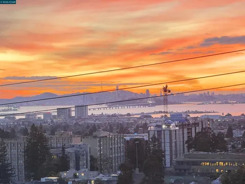 Penthouse Living with Unrivaled Panoramic Bay Views! The pinnacle of Berkeley off campus living in this stunning top-floor corner condo. Boasting unobstructed vistas of the world famous Golden Gate Bridge, wake up every day to sweeping views of glittering water on the San Francisco Bay & come home every night to a different sunset spanning the Marin headlands to Peninsula. Living in a postcard! The private deeded patio affords you excellent options for dining al fresco or star gazing. Open concept floorplan with a seamless flow from the kitchen to the living area, fabulous for entertaining while keeping the astounding views center stage. Upgrades feature high-end appliances like built in Sub-Zero fridge, an elegant Japanese toilet (bidet), in-unit laundry, elevator building. Premier location, perched right by the UC Berkeley Stadium - a dream for Cal fans! Steps from the International House, Telegraph Ave shopping, historic Claremont Resort & the #1 ranked Public university in USA: UC Berkeley. 1 dedicated parking space in gated garage. Ideal starter home, pieds terre or downsizing. Undeniable world class views this penthouse is unmatched.