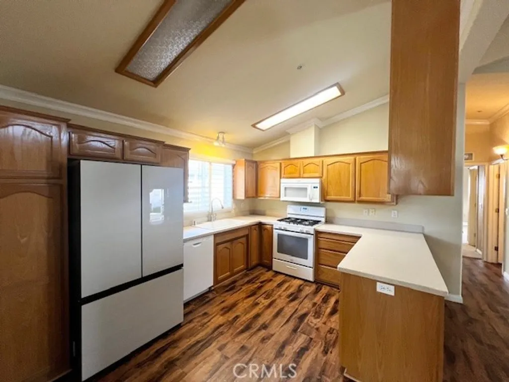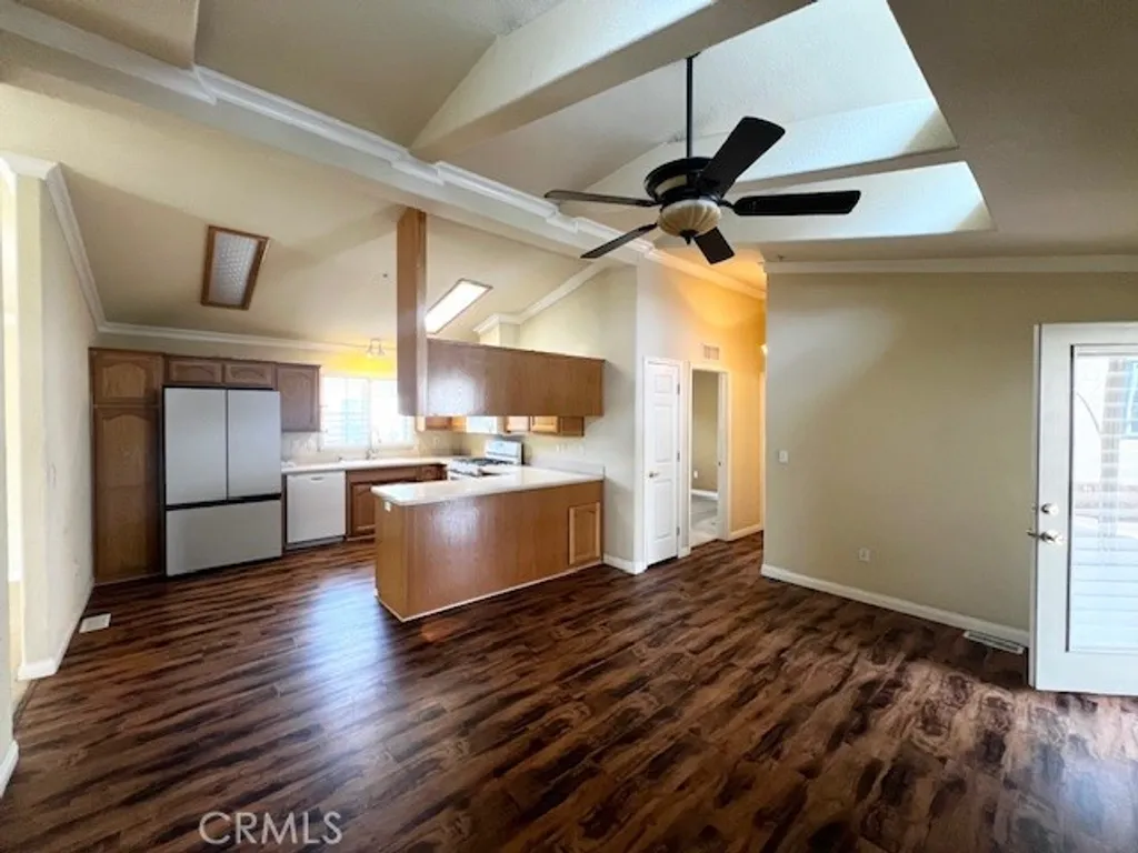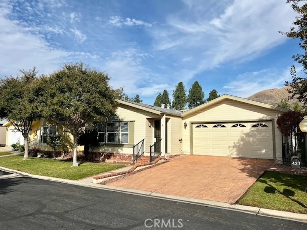 Location Location Location!!! Welcome to Valencia Lea, Highland's premier 55+ senior community. This 2005 Hallmark Winchester IV home, with approx. 1392 SF, 2 bedrooms w/ Family room, 2 bath, and attached 2 car garage. The exterior features a newer roof (2023), stamped concrete drive with brick steps and park-maintained lawn. The quite back yard has no neighbors behind the home and features a large, covered patio perfect for outdoor living. Other features include dual pane windows, ceiling fans, skylights and vaulted ceilings throughout. Living and dining rooms open to each other in an open floor plan perfect for entertaining. The kitchen has solid wood cabinets, ample storage and breakfast nook with plenty of light and includes newer appliances. The family room just off the kitchen features a huge dormer window and French door to the patio. The spacious primary bedroom has dual walk-in closets and a generously sized ensuite bath with low threshold shower and tons of storage. The guest room, bath and dedicated laundry room with sink and included washer and dryer, round out this lovely home. Call or come in to schedule a showing, this house ready for you to call it home!