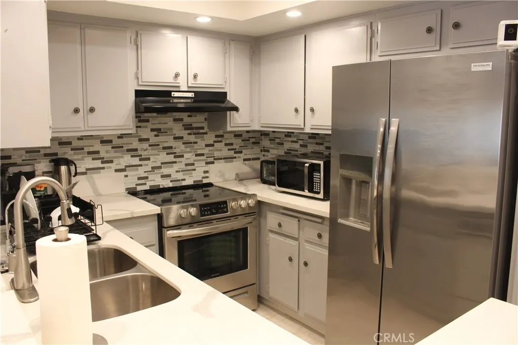 Unit E11 NO ONE ABOVE OR BELOW AND ONE OF THE FEW UNITS WITH A BACK YARD!!! This charming Condo is one of the few in the community that offers a private backyard - perfect for outdoor relaxation or entertaining. Step into the spacious family room featuring tile flooring, crown molding, baseboards, recessed lighting, and direct access to the backyard through a sliding glass door. The remodeled kitchen offers a modern design with a breakfast counter and space for a dining table, stylish backsplash, and newer appliances. Both bedrooms are generously sized with ample closet space. One of the bedrooms includes a convenient Murphy bed and enjoys abundant natural light. The subterranean parking is very close to the unit, there are two spots and some storage space.