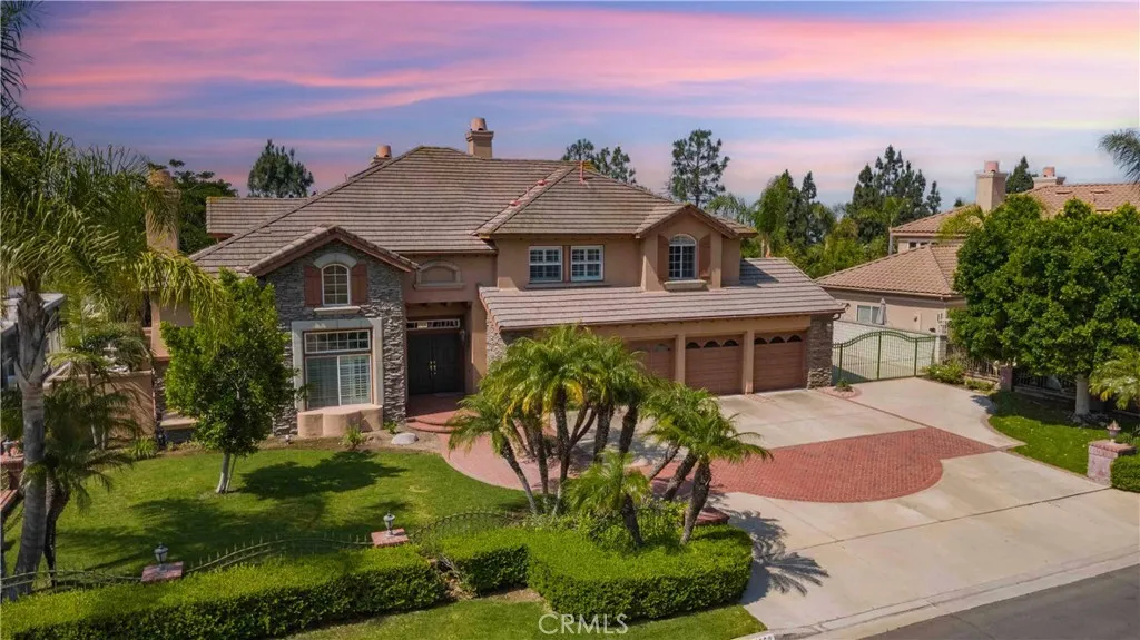 Welcome to Your Luxurious Sweet Home in East Yorba Linda! Nestled in a pristine, single-loaded cul-de-sac in the prestigious Vista Estates by Toll Brothers, this stunning residence offers privacy, elegance, and comfort on a premium view lot. Designed for both entertaining and everyday living, this home features a breathtaking backyard oasis with a sparkling pool, spa, rock waterfall, and lush tropical landscaping. Enjoy outdoor dining under the expansive terraced patio cover with a built-in BBQ, plus a full-size RV parking area (17ft x 46ft) within a 15,000 sqft Flat Lot and a spacious 4-car garage, perfect for ADU. Step through double doors into a grand foyer with soaring cathedral ceilings, a dramatic curved staircase, and a warm living room with a fireplace. The first floor includes a guest bedroom with a full bath, a formal dining room, a large updated kitchen with granite countertops, stainless steel appliances, built-in refrigerator, glass display cabinets, and an oversized island with a wraparound breakfast bar. The adjoining family room offers a cozy fireplace, large picture windows, and direct access to the backyard. Upstairs, the primary suite boasts double door entry, a retreat-like bedroom with a fireplace, and a luxurious bath with dual vanities, sunken tub, walk-in shower, private toilet room, and walk-in closet. A central loft and three additional bedrooms with wood floors complete the second level. Located in a highly sought-after neighborhood with top-rated Bryant Ranch Elementary school (rated 10/10) including Yorba Linda High (all rated 9/10). Don't miss the opportunity to own this exceptional home!
