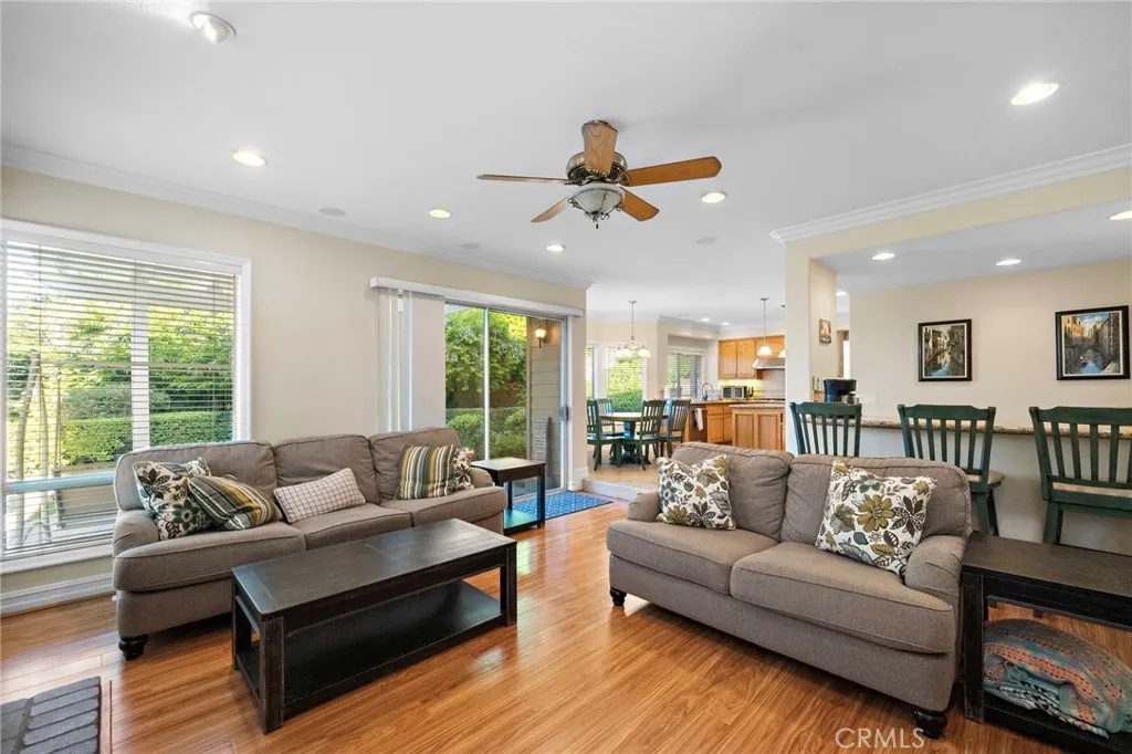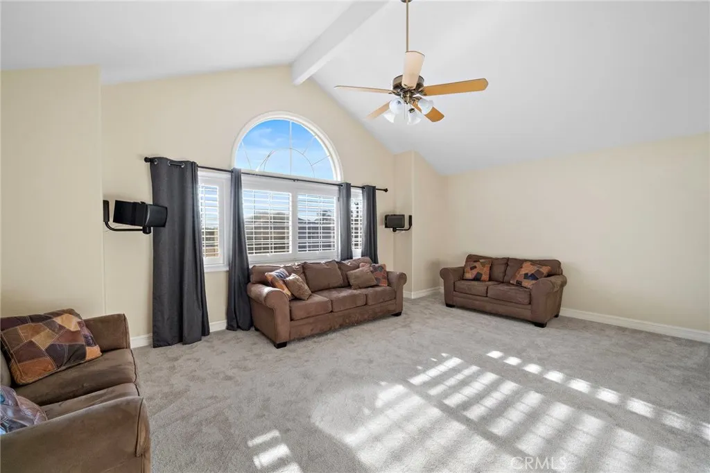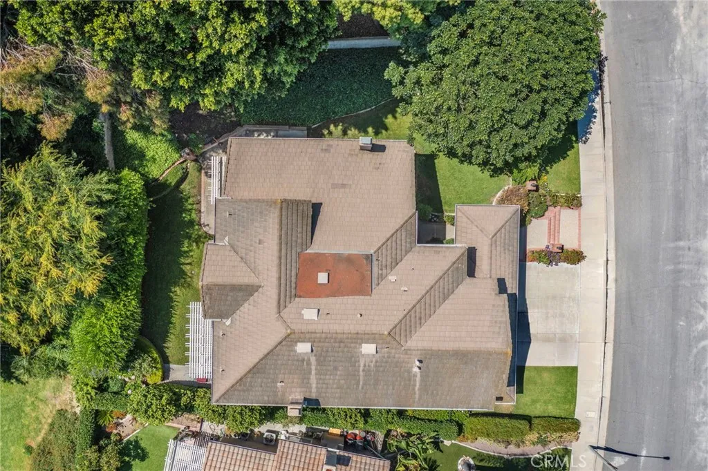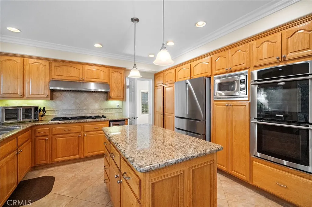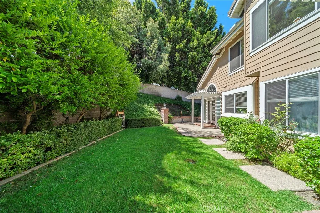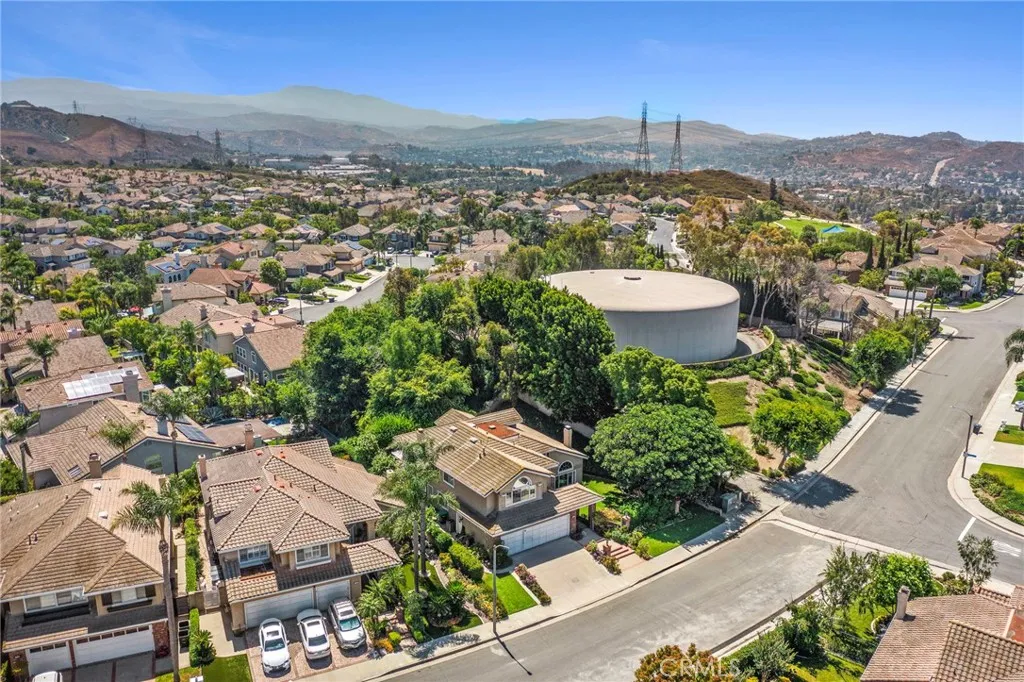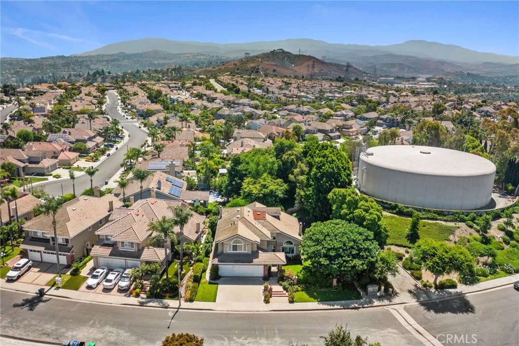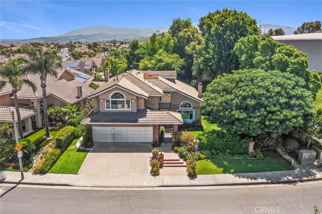 Nestled in the prestigious Belmont Estates community, this beautifully updated 5-bedroom, 3-bathroom residence offers over 3,300 square feet of refined living space. A formal tiled entry leads to a spacious living room with a stately fireplace and an elegant dining room ideal for entertaining. The expansive family room with a brick fireplace and wet bar opens to a well-appointed kitchen featuring granite countertops, double ovens, a center island, and a sunny dining nook overlooking the lush backyard. A desirable main-level bedroom and full bath provide the perfect setup for guests or multi-generational living. Upstairs, the grand primary suite features a walk-in closet, dual vanities with granite countertops, an oversized walk-in shower, and a relaxing Jacuzzi tub with city light views. Two additional bedrooms share a well-sized bath with dual sinks and a tub/shower combination. A large upstairs bonus room offers flexible space for a media room, playroom, or home office. The beautifully landscaped backyard features two covered patios and mature greenery, ideal for outdoor entertaining. Additional highlights include a spacious indoor laundry room with sink and cabinetry and brand-new carpet throughout. Located in the hills of Orange, this home combines comfort, space, and timeless appeal in a highly sought-after gated enclave