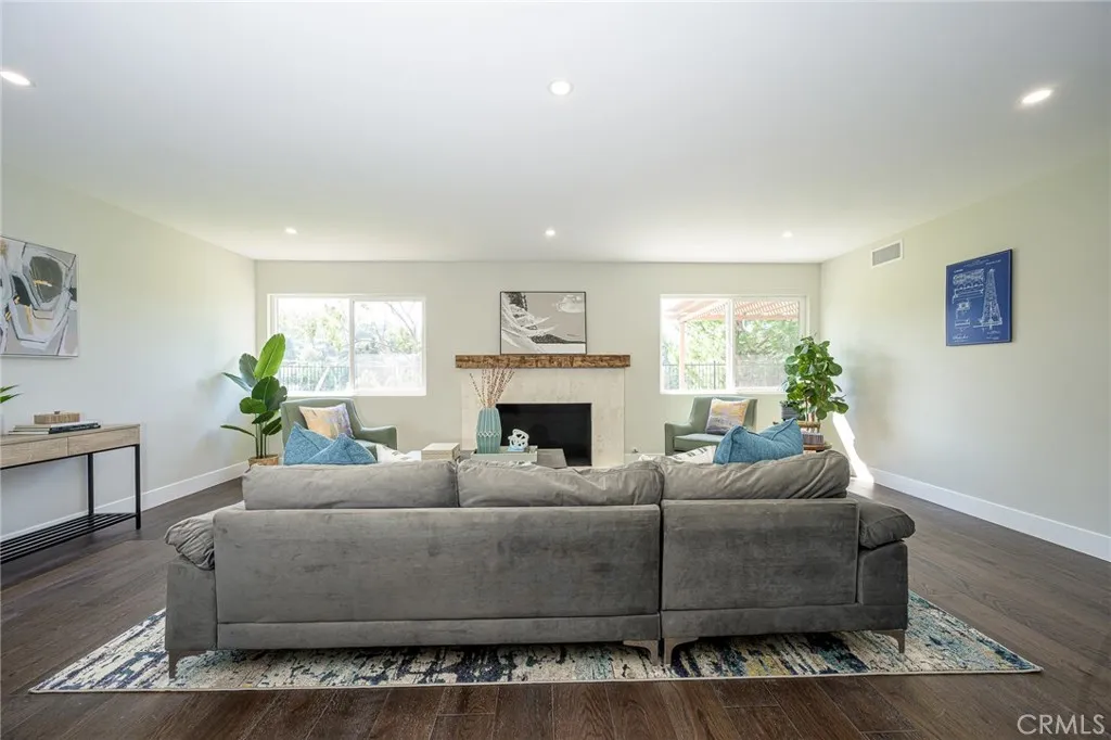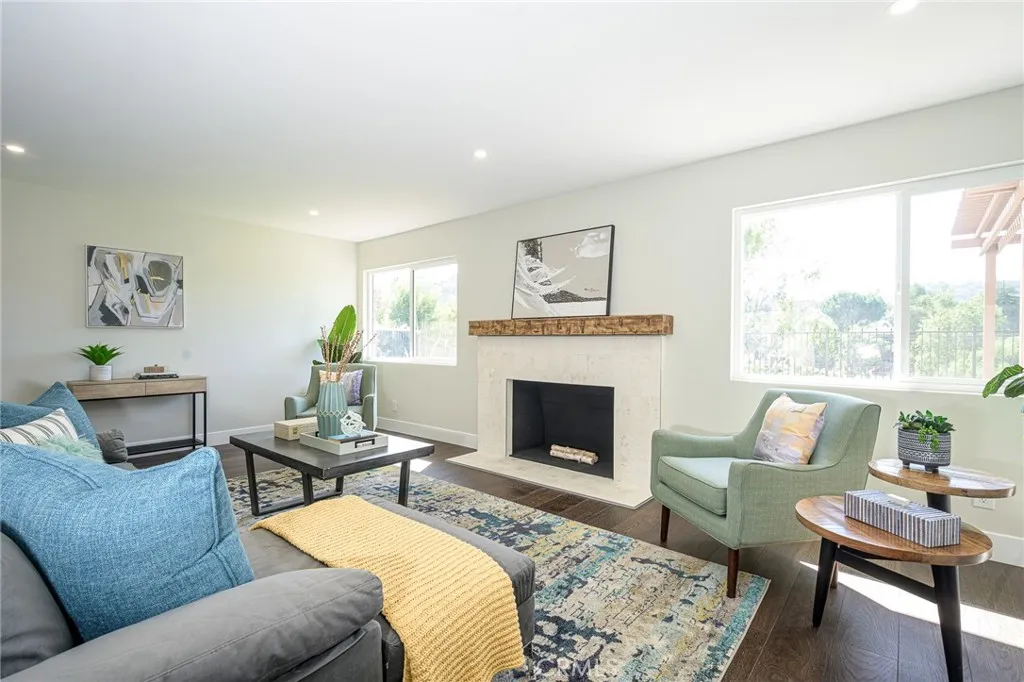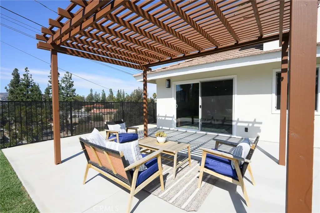 Beautifully UPDATED 5 bedroom, 3 bathroom home with stunning mountain and hill views in a desirable Hacienda Heights neighborhood. This home sits at the end of a cul-de-sac street with approximately 2441 sf of living space with an open concept living space. The kitchen has new custom two-tone cabinets, full tile backsplash, sleek new counter tops, new fixtures, stainless steel appliances, a large center island offering additional counter space and seating and a large walk-in pantry with an abundance of storage space. The bar space is great for hosting with a built-in wine fridge, wet bar area and built-in display cabinet. Downstairs you will find a living room with a decorative fireplace, dining room, kitchen, a den area that leads to one of the backyard patios, 3 bedrooms and 2 bathrooms. The primary bedroom is spacious with an ensuite bathroom, walk-in closet with custom built-ins, mountain views and sliding door that leads to another outdoor patio. Upstairs there are two additional bedrooms, both with mountain views and an additional bathroom. All the bathrooms have been upgraded with custom tile work, new fixtures and vanities. Other features include freshly painted interior and exterior, energy efficient windows and sliding doors, new interior doors, luxury flooring throughout the living areas and bedrooms, stylish plumbing and lighting fixtures, HVAC, and direct access to the two-car garage. The enclosed backyard is perfect for entertainment with stunning views, two patio areas and landscaped with new sod. This home is conveniently located and just a short distance to award winning schools, the world-renowned Hsi Lai Temple, shopping and restaurants, and local freeways.