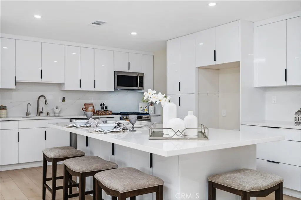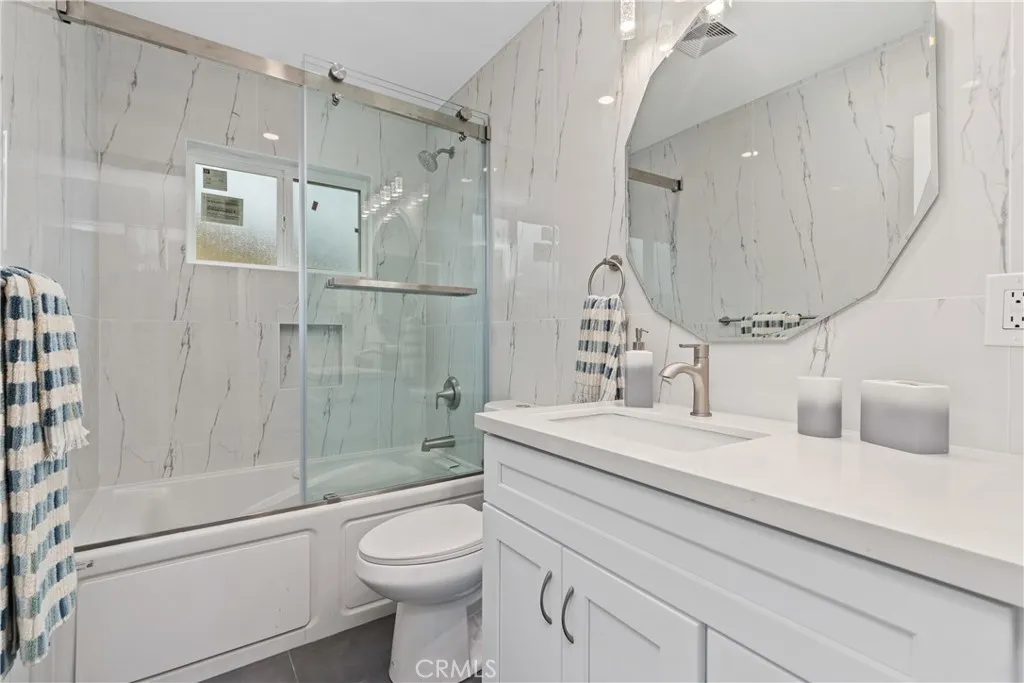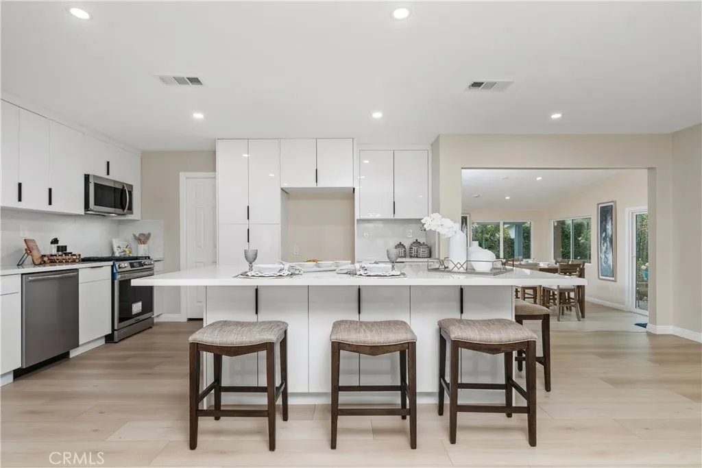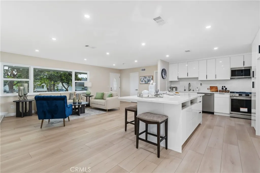 NEW PRICE!!This Anaheim SINGLE STORY three bedroom , two bathroom home has been thoughtfully renovated, including new flooring, paint, fixtures, major appliances, lighting, and room decor. As you enter the home, you are invited into the living room space that exudes style. The open floor plan adds warmth and charm to the space. New windows add natural light and energy efficiency, while insulation throughout ensures optimal comfort year-round. The stylish decor creates a cohesive and elevated atmosphere. The kitchen has been transformed with new custom designer contemperary finishes, new cabinetry, and sleek appliances, perfect for cooking and entertaining. Each bathroom features custom new glass shower doors, hardware, mirrors with integrated lighting, sink and toilets. The bedrooms have been upgraded with fresh paint, and new flooring, offering a peaceful and stylish retreat. The living room exudes an open feel with custom big windows and new flooring that adds warmth and charm to the space, making it perfect for both relaxing and entertaining. The garage is upgraded with epoxy flooring. For Peace of mind this home offers new plumbing, new sewer line, and newer electrical system. the backyard provides a serene space for private enjoyment. This detached home offers the ultimate in comfort, style, and modern living. Welcome home!