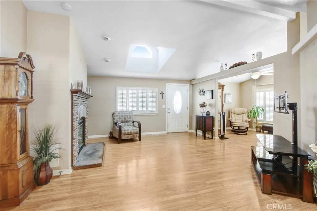 Beautiful 2-Bedroom Skyline Double-Wide Home in The Fountains - A Premier 55+ Community! This charming home includes a versatile third room that can be used as a bedroom, den, craft room, or home office. Ideally located on a corner lot, it boasts a spacious, lengthwise covered porch with a north-facing view of the stunning San Gabriel Mountains. Lovingly maintained and in move-in ready (turnkey) condition, the home offers an open and airy floor plan with high ceilings. The large living room features a gas fireplace for cozy evenings, and a bright skylight fills the space with natural light. A sunroom/sitting area with plantation shutters and three oversized windows enhances the charm. Additional highlights include: Dining room and den/office with elegant French doors Kitchen with Corian countertops, wood cabinetry, and ample storage Wood-style laminate flooring throughout, with carpeted bedrooms Ceiling fans in multiple rooms Guest bathroom with walk-in shower Primary bathroom with a Safe Step walk-in spa tub and skylight Dedicated laundry room with access to back stairs, carport, and storage shed with shelving Low-maintenance turf yard The Fountains is a beautifully maintained, gated 55+ community with fantastic amenities, including a clubhouse with banquet hall, full kitchen, swimming pool, spa, shuffleboard, gym, dog park, and more. Enjoy a vibrant social calendar with weekly events, holiday celebrations, and community gatherings. Additional Details: The ENTIRE PARK is being repaved in June 2026 Gated RV parking available 360 picture tour available! Home is on the local property tax roll New space rent: $1,520/month (Seller will pay 3 months of rent to new buyer!)