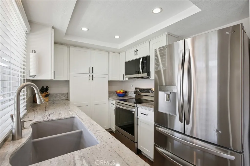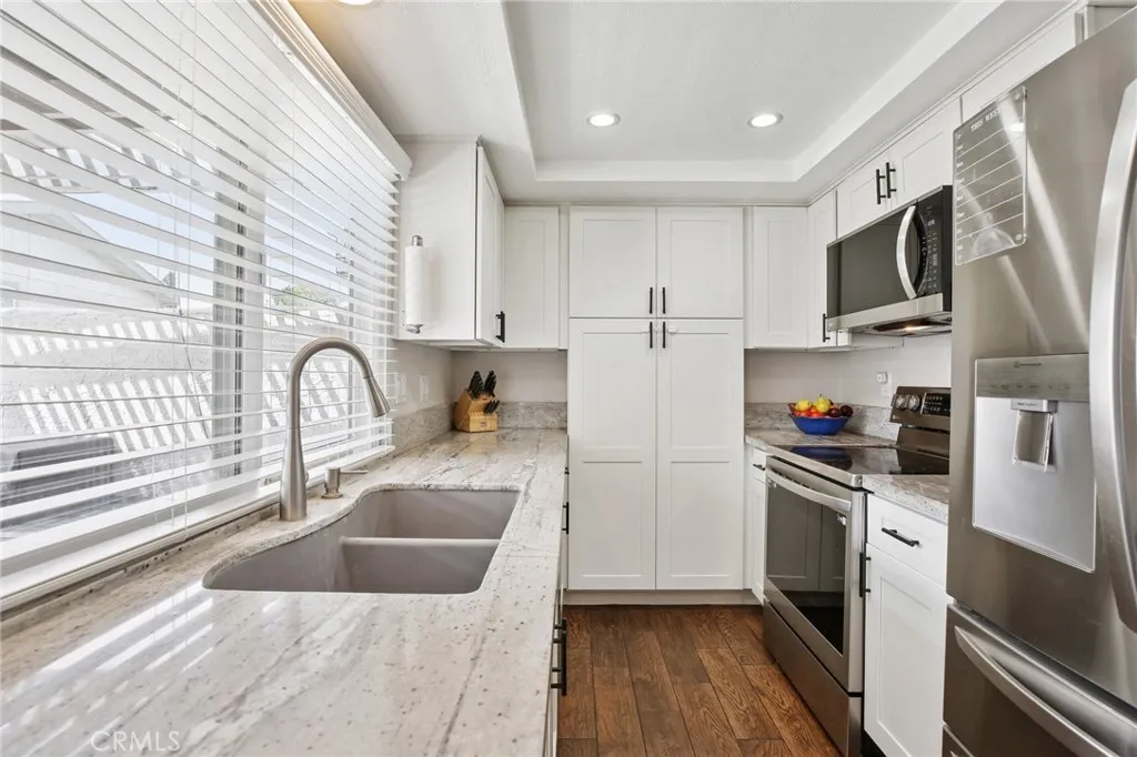 Welcome to 369 N. Via Remo, nestled in the tranquil Villa Frontera community. This charming single-family home features three bedrooms, one full bath, and one half bath. Situated on a corner lot, it offers added privacy and access to the HOA's beautifully maintained grounds. Expansive windows fill the home with natural light, complementing the bright, open floor plan. The interior has been tastefully upgraded throughout. The kitchen boasts a spacious dining area, modern stainless steel appliances, granite countertops, and white shaker cabinetry. Upstairs, you'll find three generously sized bedrooms and a recently remodeled full bath. A convenient attached two-car garage includes a private laundry area. Step outside to your backyard - ideal for relaxing and entertaining family and friends, or little ones and pets to play safely. Additional highlights include newer window treatments, fresh paint, ceiling fans in every room, a new water heater, designer wood-look tile flooring, recessed lighting, and updated vinyl windows. Enjoy HOA amenities, including a clubhouse, pool, and exterior maintenance. Ideally located, the home offers access to top-rated schools, shopping, and entertainment options like Disneyland, Knott's Berry Farm, Honda Center, and Angel Stadium. Commuters will appreciate easy access to the 91, 57, and 55 freeways. No Mello-Roos and Low Taxes. Don't miss this incredible opportunity to make this wonderful home yours!