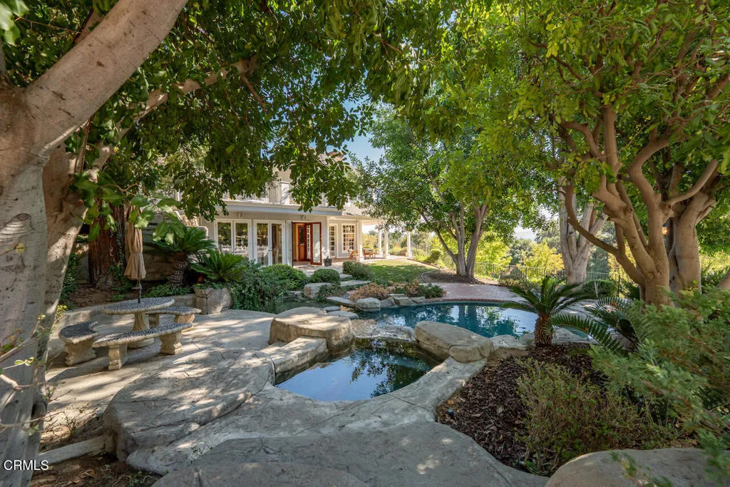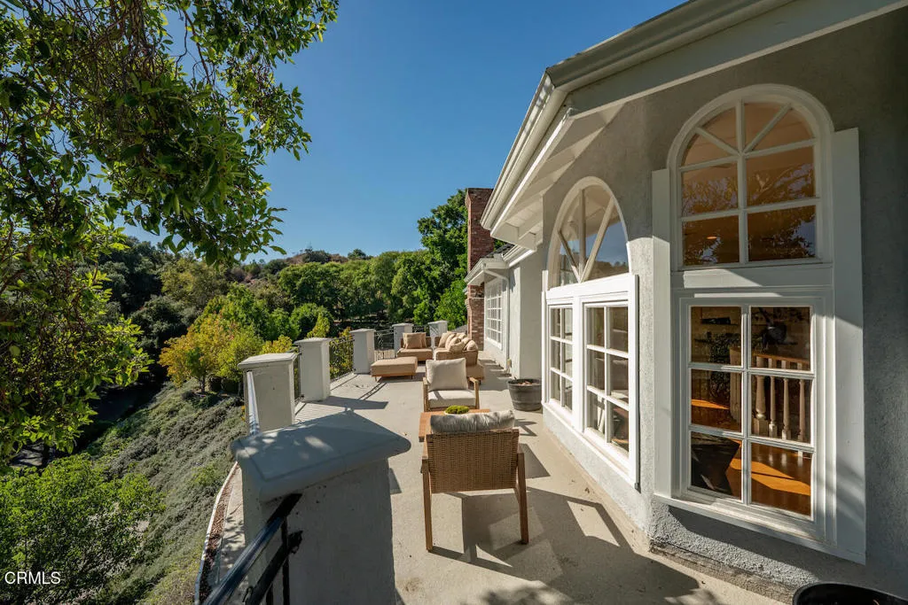 Nestled within the exclusive Bradbury Estates, a 24-hour guard-gated community renowned as one of California's most distinguished addresses, this exquisite home offers five bedrooms and six bathrooms designed for luxurious comfort and lifestyle. As you arrive, you're greeted by meticulously manicured landscaping and a serene ambiance that immediately sets the tone for the grandeur within. Custom-built by Mur-Sol Construction, this remarkable estate rests on nearly 5 acres and showcases exceptional craftsmanship, architectural precision, and thoughtful design.The main residence spans 6,579 square feet across two levels, offering an inviting yet sophisticated layout. The grand foyer welcomes you with soaring ceilings, a graceful curved staircase, and an abundance of natural light that fills the home with warmth. At the heart of the home lies a gourmet chef's kitchen, equipped with high-end appliances, a large center island, and an inviting breakfast area framed by six sets of French doors that open seamlessly to the backyard and outdoor BBQ area. Adjacent, the formal dining room provides the perfect setting for intimate dinners or lavish celebrations. The luxurious primary suite is a private sanctuary, featuring a cozy fireplace, spa-inspired bath with soaking tub, dual vanities, and a spacious walk-in closet. Expansive balconies and a covered veranda capture sweeping vistas of the surrounding hillsides and city lights, creating the perfect backdrop for morning coffee or evening relaxation. Designed for both everyday living and grand entertaining, this estate offers an array of resort-style amenities, including a stunning pool and spa with a cascading rock waterfall, multiple outdoor lounge and dining areas, and a North-South-facing professional tennis court. For equestrian enthusiasts, the property also includes a full-size riding pavilion, casita, and stables. Set amidst the tranquil beauty of Bradbury, this estate offers the ultimate in privacy, prestige, and natural splendor. Renowned for its expansive estates, scenic landscapes, and exclusivity, Bradbury embodies refined luxury and timeless elegance, harmoniously blending world-class amenities with breathtaking natural surroundings and panoramic views.