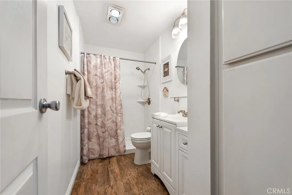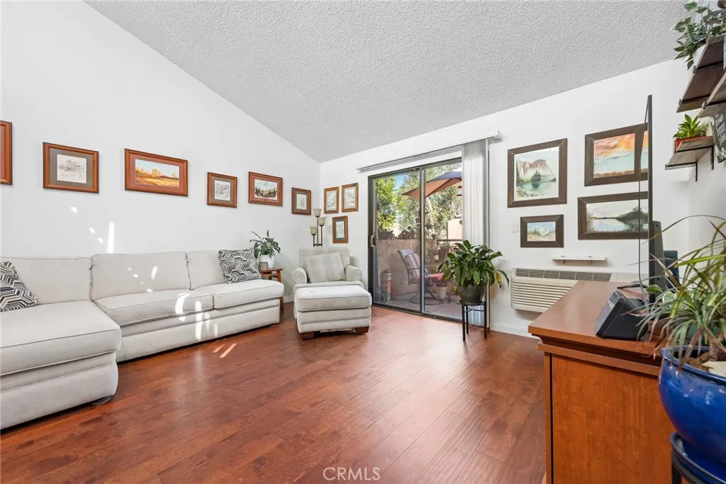 Welcome to your charming oasis in a vibrant 55+ community! This beautifully remodeled condo, built in 1982, offers an inviting 580 square feet of thoughtfully designed living space. Step inside to discover stunning laminate flooring throughout, creating a warm and welcoming atmosphere. The bright and airy living room seamlessly flows into the dining area, perfect for both entertaining friends and enjoying quiet meals at home. The well-appointed kitchen features modern Corian countertops and is open to the living and dining areas, ideal for social gatherings. Natural light pours in through The windows, enhancing the spacious feel of this delightful home. Your tranquil primary suite boasts a generous walk-in closet and convenient access to the charming balcony, also accessible from the living room, which provides a peaceful retreat for enjoying neighborhood views and fresh air. Additional comforts include air conditioning for those warm summer days and easy access to the building's elevator and the ramp that makes this seem as though its on the first level. This is a level unit but is on the second floor. This condo is truly a hidden gem, combining convenience and style in a picturesque setting. Experience the ease of low-maintenance living with community amenities that enhance your lifestyle. Don't miss this opportunity to own a wonderful home in a great community! There is also a large clubhouse as well as a library within the clubhouse. Located just across the street from the Yorba Linda town center, you'll have easy access to shopping, dining, entertainment and a local coffee shop that is just down the road. The library and cultural center are also close by. Schedule your private tour today and picture yourself calling this place home.