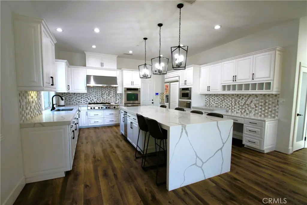 Welcome to Haven View Estates, an exclusive guard-gated community nestled in the prestigious foothills of Rancho Cucamonga. Known for its luxury estates, breathtaking mountain and city-light views, and proximity to the area's finest amenities. This stunning five-bedroom, five-and-a-half-bathroom custom residence showcases exquisite craftsmanship and elegant design throughout. As you approach the property, you're greeted by a beautifully landscaped front yard and an impressive architectural fa ade that combines timeless sophistication with modern elegance. Inside, soaring ceilings and expansive windows fill the home with natural light, highlighting the open-concept layout and high-end finishes. The grand foyer opens to a formal living room with a dramatic fireplace, ideal for entertaining guests or enjoying quiet evenings by the fire. The adjacent formal dining room offers an elegant setting for gatherings, complete with custom lighting and views of the inviting yard. The gourmet kitchen is a chef's dream, featuring professional-grade stainless steel appliances, a large center island with bar seating, custom cabinetry, and a walk-in pantry. An open concept adjoining family room with a second fireplace create a warm and inviting space for everyday living. Each of the five spacious bedroom suites offers comfort and privacy, with en-suite bathrooms and generous closet space. The luxurious primary suite serves as a private retreat, boasting panoramic city-light views, a sitting area, and a spa-inspired bathroom with dual vanities, a soaking tub, and an elegantly designed tandem walk-in shower. The convenient powder room adds a touch of convenience and style for guests. Step outside to enjoy the beautifully designed backyard, where you'll find multiple seating areas, lush landscaping, private putting green and ample space for outdoor entertaining. Whether hosting a barbecue, relaxing under the covered patio, or simply soaking in the serene views of the San Gabriel Mountains, this outdoor oasis is a true extension of the home's elegance. Located within an award-winning school district and just minutes from hiking and horse trails, fine dining, and two major shopping centers, this home offers both privacy and accessibility. Haven View Estates provides the perfect blend of luxury, community, and value - an unparalleled opportunity to own a remarkable estate in one of Rancho Cucamonga's most sought-after neighborhoods.
