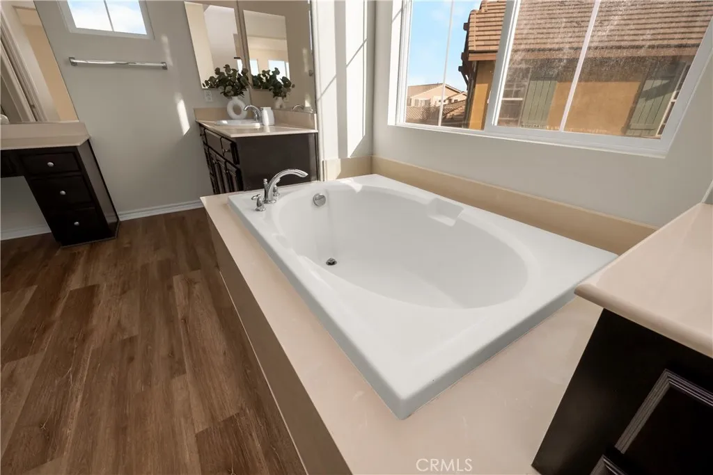 Welcome to this beautiful home located in the prestigious gated community of Rancho Etiwanda Estates, renowned for its exceptional school district and breathtaking mountain views. This residence offers great curb appeal with a charming single-door entry and a private front courtyard featuring separate access - perfect for added privacy or a serene outdoor retreat. Step inside to a bright and open floor plan with a formal living and dining room that creates a welcoming first impression. Enjoy the elegance of brand new luxury vinyl plank flooring throughout and a freshly painted interior that enhances the home's airy and modern feel. The heart of the home is a spacious, upgraded kitchen featuring a large center island, custom workspace, an abundance of cabinetry, a walk-in pantry, and a convenient butler's pantry. Brand new stainless steel appliances include a convection oven, built-in microwave, powerful range hood, and dishwasher - making this kitchen a dream for any home chef. It opens seamlessly to the cozy family room with a warm fireplace, perfect for everyday living or entertaining guests. A private downstairs bedroom and full bath offer the perfect space for overnight guests or a home office setup. Recessed lighting throughout adds a modern touch and enhances the home's bright ambiance. Upstairs, a generous loft opens to a private balcony where you can take in sweeping views of the neighborhood and nearby mountains. The luxurious primary suite features double-door entry, a spacious layout, and unobstructed views of city lights. The en-suite bathroom is designed for relaxation, showcasing a large soaking tub, separate walk-in shower, dual vanities, and an oversized walk-in closet - creating a true spa-like retreat. Two additional upstairs bedrooms offer beautiful city lights views, providing comfort and style for family or guests. A convenient upstairs laundry room includes a utility sink and ample space, adding functionality and ease to your daily routine. The low-maintenance backyard is beautifully landscaped with a concrete patio - ideal for relaxing or entertaining outdoors. A two-car garage completes this move-in-ready home. Don't miss the opportunity to live in one of Rancho Cucamonga's most desirable communities, combining comfort, elegance, and top-tier amenities.