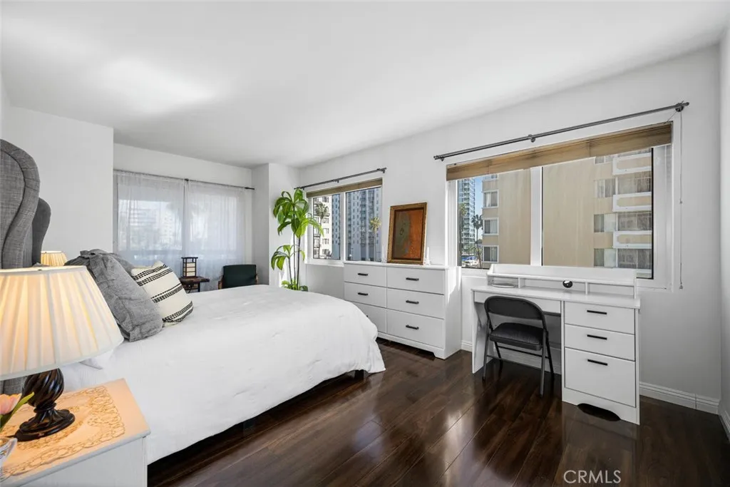 It's not too often that a downtown condo offers the satiating satisfaction of a coastal view and the exciting vibrance of a city view, but here at 525 E. Seaside Way you can enjoy both. With 1,399sqft of living space, one of the largest floor plans offered, this Harbor Place 2 bed, 2 bath end unit condo is uniquely sought after, as these desirable units offer not one, but two balconies with distinctly different views, and are not often available. The convenience of in-unit full size side-by-side laundry, a host of closet space, and a luxury level amenity package that includes, 24hr security, mail room, lap pool, jacuzzi, weight-room, men's and women's saunas, grilling station, meeting rooms, 80 (YES, 80!) plus visitor parking spaces, and more. This move-in ready unit has beautifully upgraded flooring throughout, upgraded kitchen, and soaking tub with shower in the guest bathroom. Enjoy the jacuzzi tub with separate walk-in shower and dual vanity in the master suite, in a sophisticated unit complemented by a bright, spacious layout, and two assigned parking spaces. Experience an elevated luxury high-rise lifestyle, in downtown Long Beach. Steps from entertainment, shopping, restaurants, beach paths, and so much more. Not only will you be privy to enviable views that are unmatched by grandstand spectators and tv viewers alike during the annual Long Beach Grand Prix car races, but you'll be near the epicenter of the 2028 Summer Olympic Games in which the city of Long Beach will play host to numerous events. Take this opportunity to establish your place in downtown Long Beach's lively community while you can!