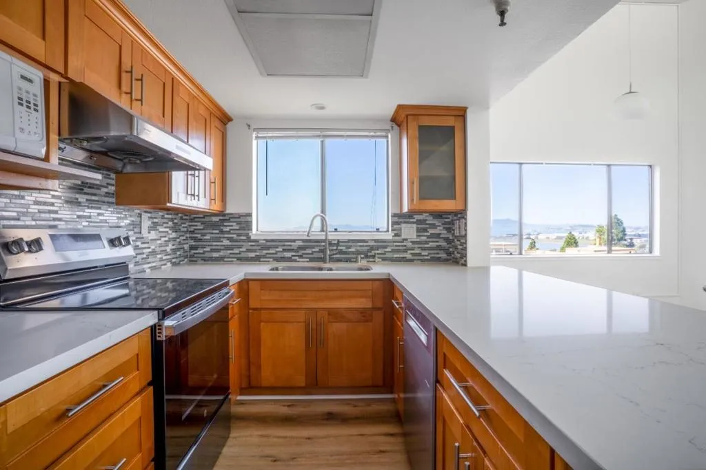 Welcome to your top-floor, end-unit haven! Located a few short blocks from the waterfront! No shared wall with neighbors. Situated in the highly desirable Albany neighborhood, this condo boasts elegant granite countertop and a layout that lets you soak in the view from every room. Straight view of Golden of SF Golden Gate Bridge, city skyline & the shimmering bay from every room with no sight line obstructions. The spacious, open-concept design is flooded with natural light, creating a warm and welcoming environment as soon as you step inside. With two generous primary bedroom en-suites, a dedicated laundry room, and additional off-unit storage, every inch of space is designed for maximum comfort and convenience. This unit includes two parking spaces and offers access to top-tier amenities such as a gym, clubhouse, and pool, making daily living both luxurious and hassle-free. This house is surrounded only by mountains, forests and adjacent hiking trails. Perfectly situated, you'll be just moments from Pacific East Mall, AC Transit stops, El Cerrito Plaza, BART, and highways 80 and 580. Top-rated schools are also within easy reach. Don't miss out on this exceptional opportunity to own a piece of paradise!