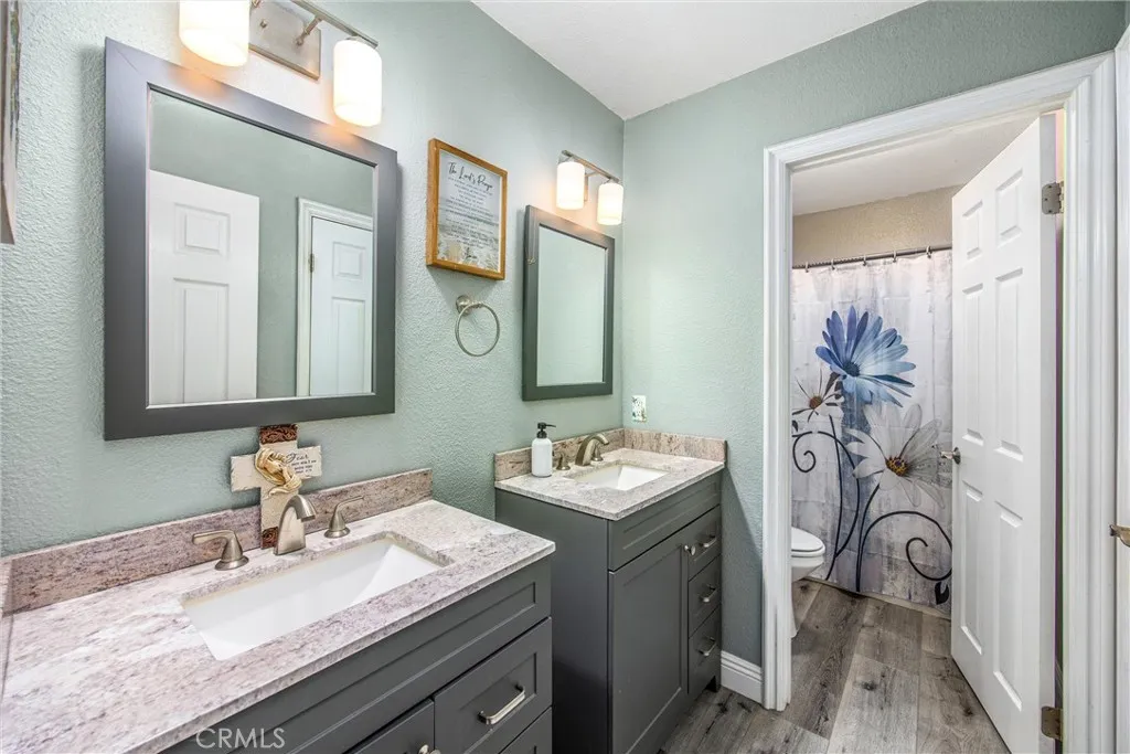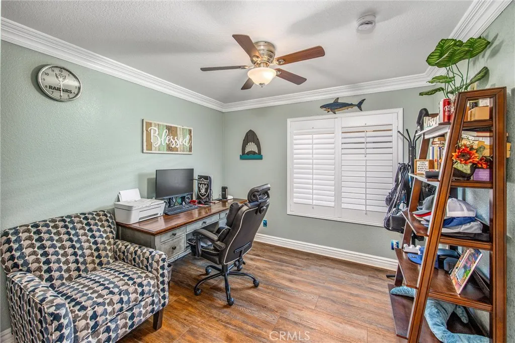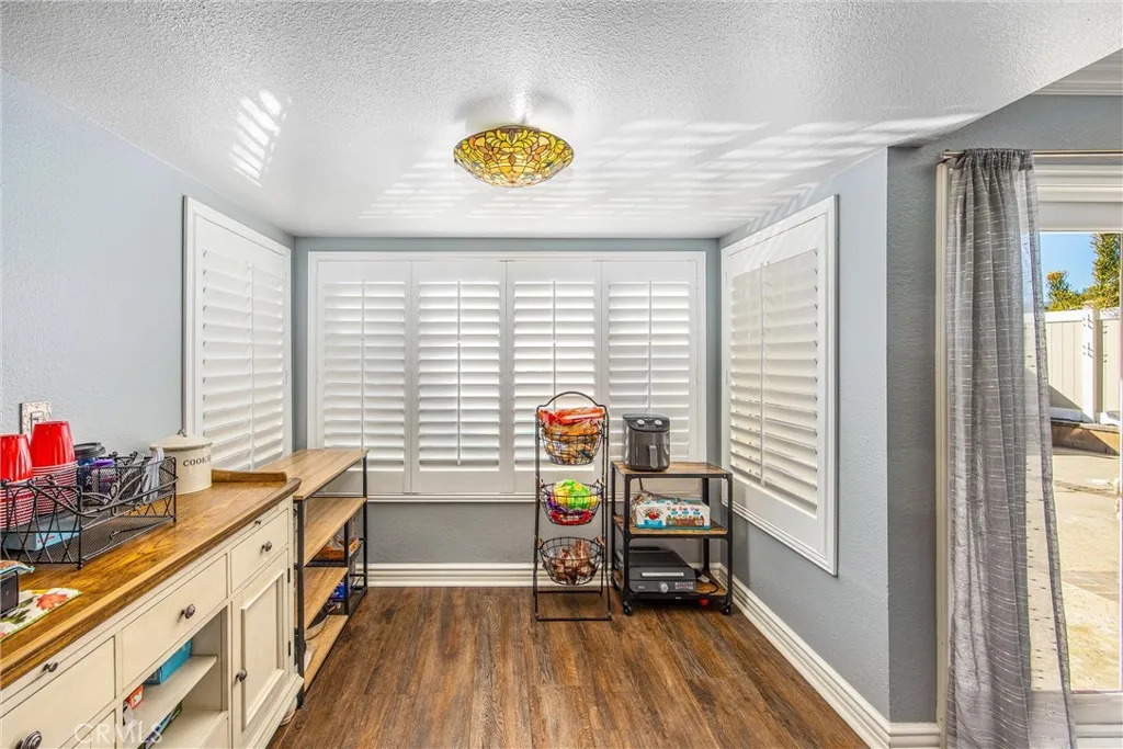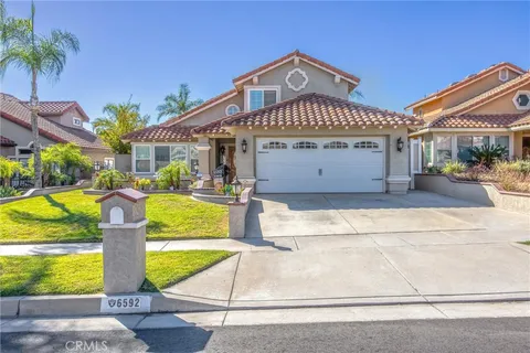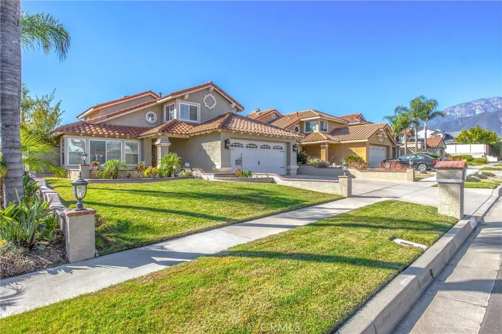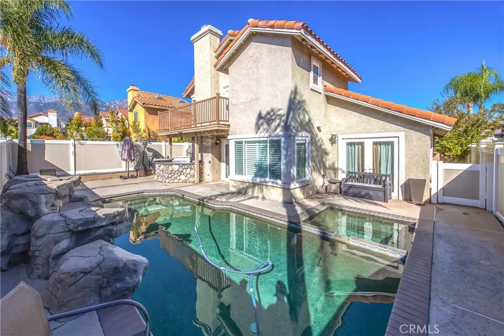 Enjoy peaceful neighborhood walks and all the amenities this exceptional home has to offer. Welcome to this stunning 4-bedrooms, 3 bath home located in one of Rancho Cucamonga's most sought-after neighborhoods. The formal living and dining rooms are perfect for entertaining, featuring plantation shutters and laminate flooring throughout the lower level. The kitchen offers granite countertops and cozy breakfast nook that opens to the family room, complete with a warm and inviting fireplace. A convenient downstairs bedroom and bath make an ideal space for guests, an office, nanny, or in-law suite. Upstairs, you'll find the remaining spacious bedrooms, including jack and Jill set up and a beautiful primary suite. The primary bedroom boasts a romantic balcony overlooking the backyard and mountain views. The recently updated primary bath features a custom closet, walk-in shower, dual sinks, elegant mirrors and stylish vanity. Step outside to the entertainers backyard with built-in BBQ and sparkling Pebble Tec pool and spa perfect for relaxing r hosting gatherings. Located in the highly rated Los Osos school, dining and the 210 freeway.