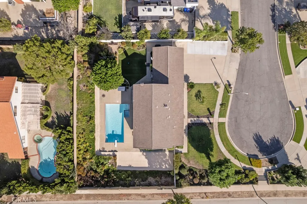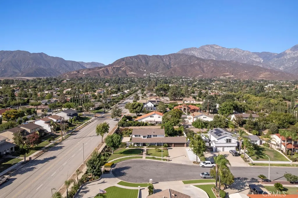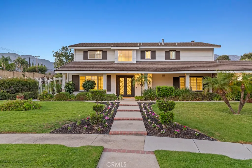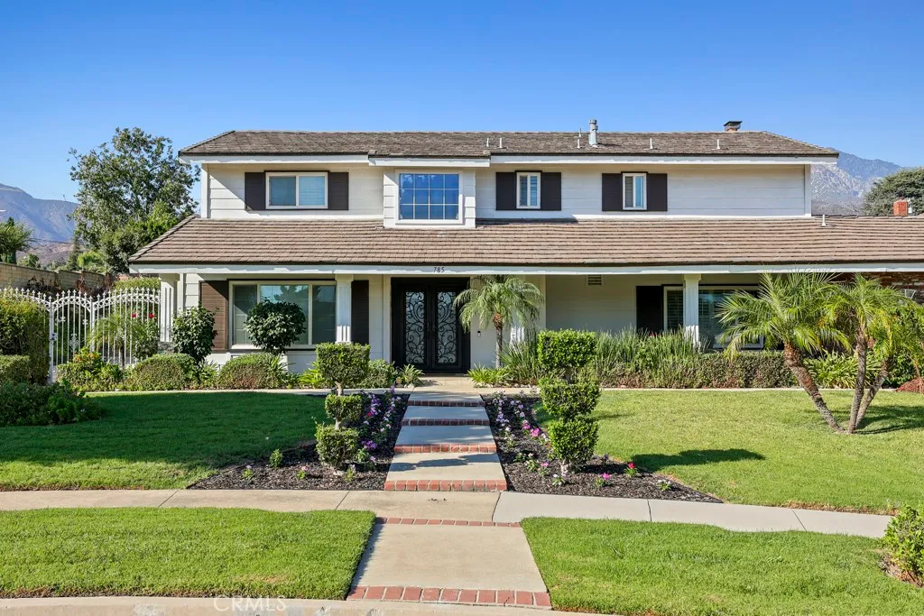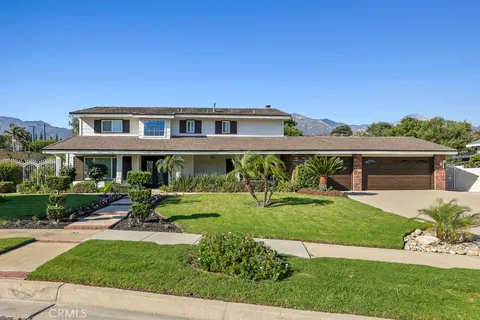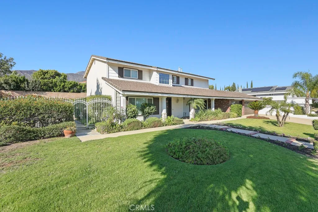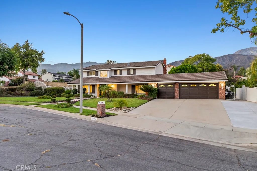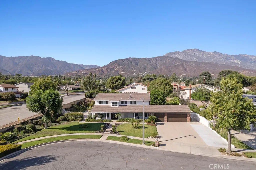 Welcome to this stunning two-story home offering 2,523 square feet of living space on an expansive 16,640 sq. ft. lot. Perfectly situated on a peaceful cul-de-sac, this residence combines modern updates with timeless charm, all while showcasing breathtaking mountain views. The beautifully landscaped grounds feature a large in-ground heated pool and spa, ideal for relaxing or entertaining. The spacious backyard is enhanced with newer concrete, providing the perfect setting for gatherings, plus ample RV parking for added convenience. A finished 3-car garage with epoxy flooring offers both function and style. Inside, the remodeled kitchen shines with quartz countertops, soft-close white cabinetry, and a bright, airy atmosphere that flows into the casual breakfast nook. The home offers both a formal living room and dining room, each generously sized for entertaining. The family room with a cozy fireplace provides the perfect place to unwind. All bedrooms are upstairs, offering privacy and comfort, and each is spacious with plenty of natural light. The primary suite is a true retreat, featuring a spacious, updated bathroom with double sinks, a large step-in shower, and an overhead shower faucet for a spa-like experience. Additional highlights include the updated staircase with newer railing, stylish shutters throughout, and a 3-year-old water heater. This home is the perfect blend of comfort, style, and function - inside and out.