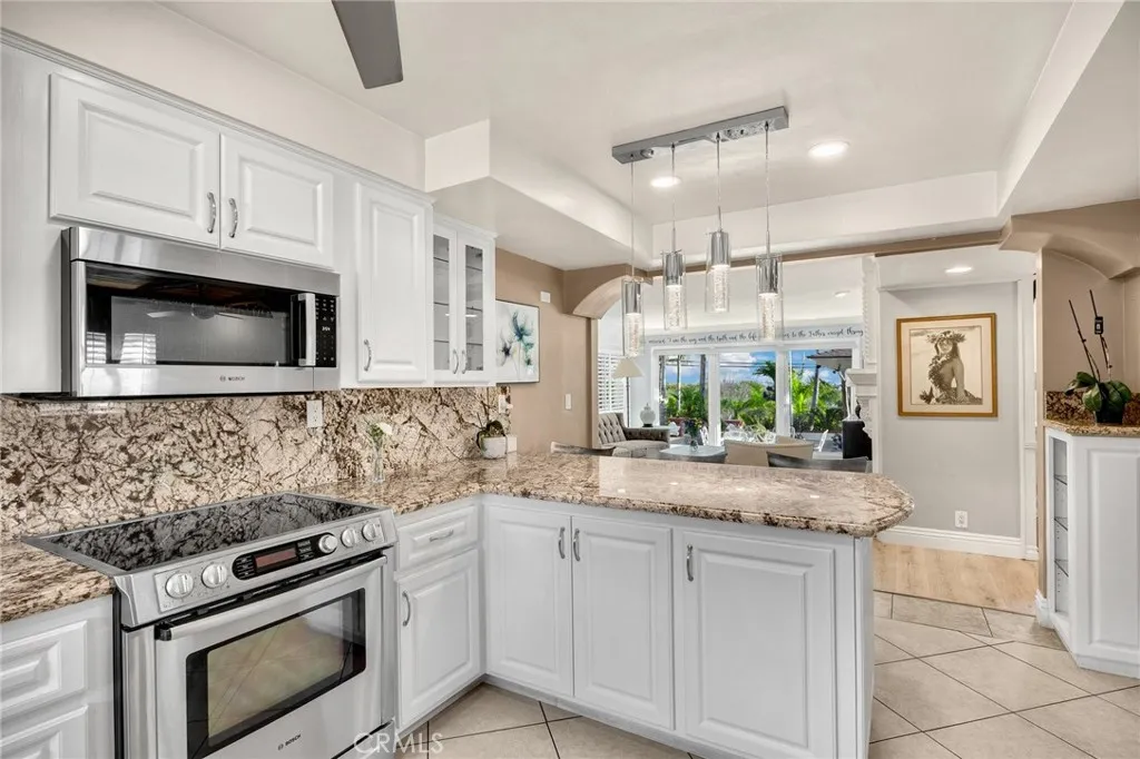THIS HOME IS A MUST SEE! BEAUTIFUL SINGLE STORY HOME in a highly sought-after Fullerton neighborhood with Disneyland firework view! This home features a bright and open floorplan with 3 bedrooms, 2.5 bathrooms with 2,060 square feet of spacious living space on a 14,178 sq foot lot! This floor plan features a large living room at the entry that includes a cozy fireplace, beautiful new flooring, recessed lighting, and has a beautiful view of the expansive backyard that provides plenty of natural lighting. The beautifully designed kitchen features plenty of custom cabinetry for storage, stainless steel appliances including Bosch gas range with microwave overhead, beautiful stone countertops, large Farmhouse apron sink, and pantry. The family room features a custom wood ceiling, cozy fireplace and is adjacent to the formal dining room that includes built-in cabinetry for storage. The primary suite features a spacious bedroom area with plenty of natural lighting, beautiful bath vanity with walk-in shower. Down the hall are two spacious bedrooms, a hall bathroom that features a beautiful sink vanity, soaking tub and has direct access to the backyard. This private backyard is SPECTACULAR!! This expansive backyard features a large, covered patio, mature landscaping, and plenty of room to build into your own oasis. There is even room to build your own ADU. Additional features of the home include detached 2 car garage, long driveway for additional parking, composition roof, copper plumbing, and dual pane windows. This home is centrally located to dining, shopping, entertainment and is a short distance to Cal State Fullerton, Fullerton College and downtown Fullerton. Come view this beautiful house and make it yours today!