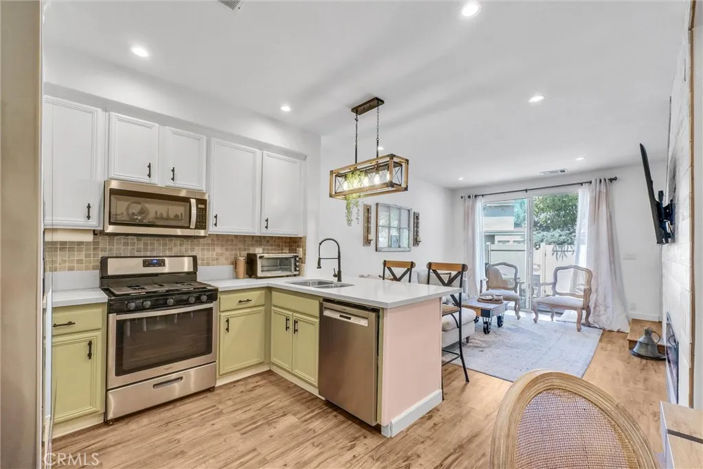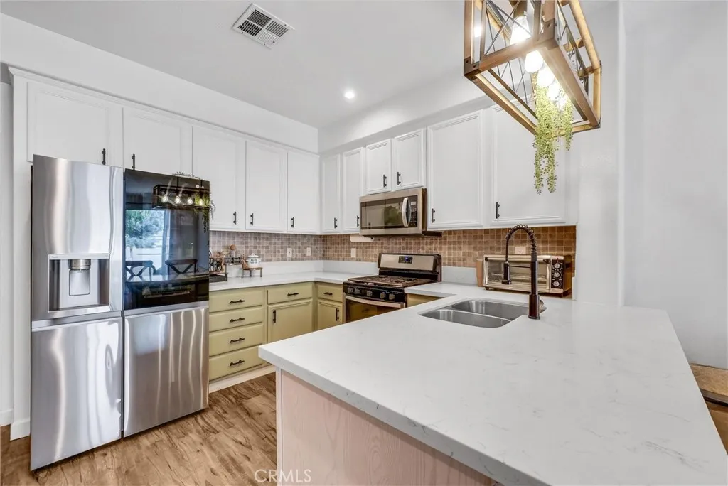 Absolutely stunning turnkey two-story townhome located in the prestigious Summit Park community of Anaheim Hills! This beautifully maintained home features 2 spacious bedrooms and 2 full bathrooms, along with an attached one-car garage and an assigned carport . Note: Client updated the property the last few years with updated new kitchen counter top, wood flooring, dishwasher, washer and dryer, updated toilets and ceiling/lighting. The most recent update was the water heater last year. The main floor boasts an inviting living space with an abundance of natural light and a gorgeous kitchen with modern cabinetry. The cozy living room opens up to a private patio through a sliding glass door. Perfect for entertaining or relaxing outdoors. Upstairs, you'll find two generously sized bedrooms and vaulted ceilings that enhance the sense of space and comfort. The home is immaculately clean and move-in ready.