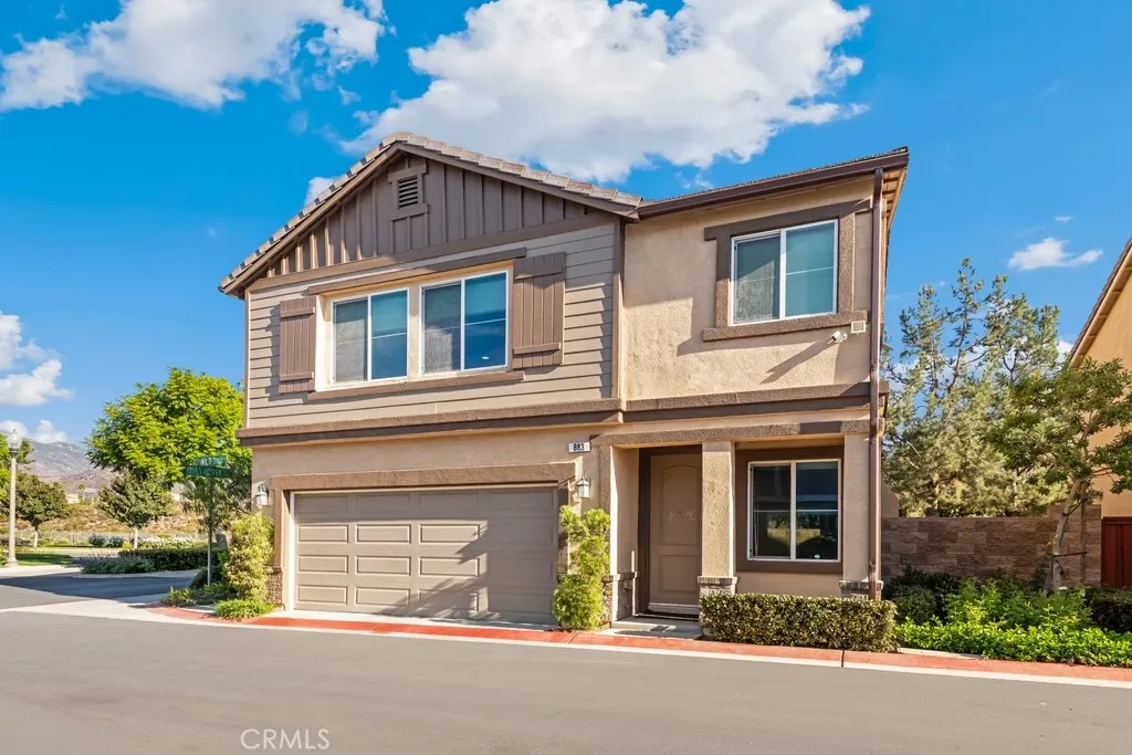 Welcome to The Colonies, where comfort and style meet in this stunning south-facing home, built in 2015. Featuring 3 bedrooms and 2.5 bathrooms, this residence showcases a unique and thoughtful design that seamlessly blends functional living spaces with areas perfect for family gatherings and entertainment. Step into the inviting living area, highlighted by a cozy fireplace that creates a warm and welcoming atmosphere. The modern open kitchen is equipped with bar stool seating and offers generous cabinetry, providing ample storage for all your culinary needs. Overlooking the living space, it creates a seamless flow for socializing and dining, making it a true centerpiece of the home. The spacious primary retreat serves as a private sanctuary, complete with a well-appointed ensuite bathroom for added luxury. The two additional bedrooms are comfortably sized, while the sleek, updated bathrooms add a touch of modern elegance. This home has been freshly painted inside and out, including the exterior shutters, and features new gutters throughout, ensuring a polished and well-maintained appearance. Nestled within a well-maintained community, residents enjoy a low HOA fee and access to a scenic trail system, ideal for walking and jogging. With easy access to the 210 & 10 freeways, this home is conveniently located near shopping centers, restaurants, entertainment venues, recreational parks, and two well-known golf courses. Experience the perfect blend of convenience, comfort, and community in this beautiful home at The Colonies.