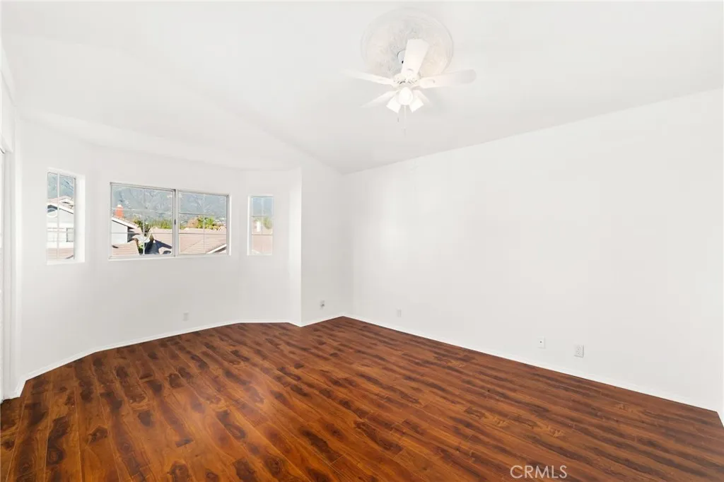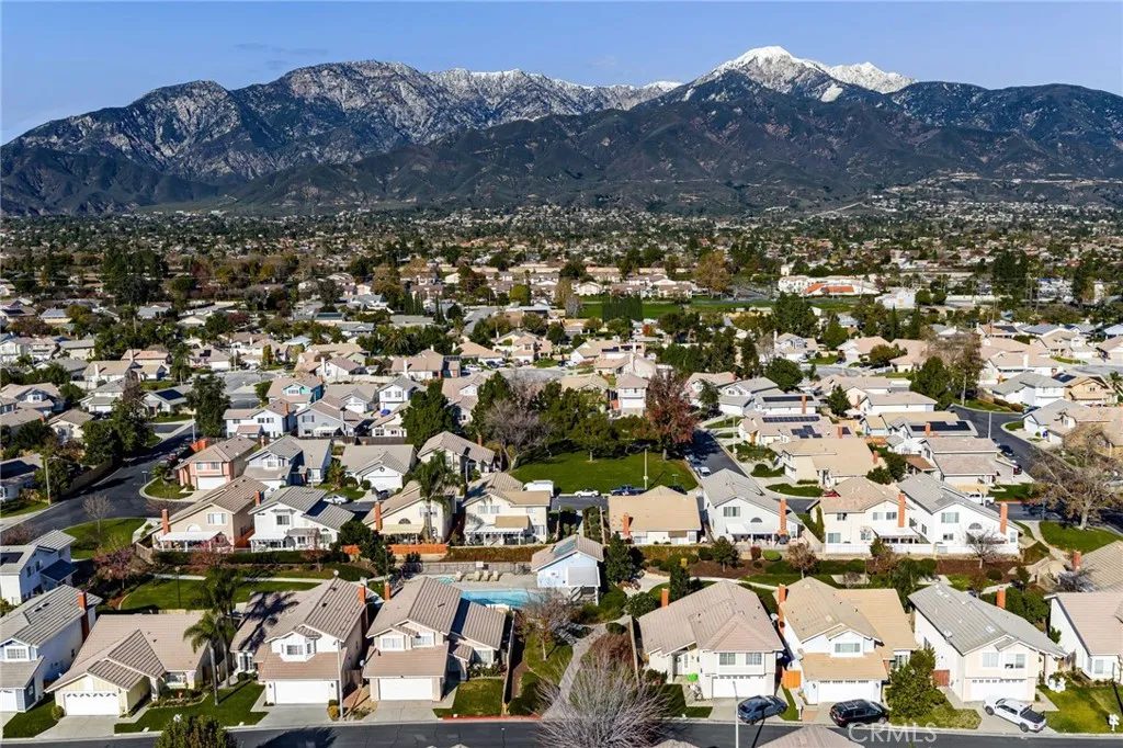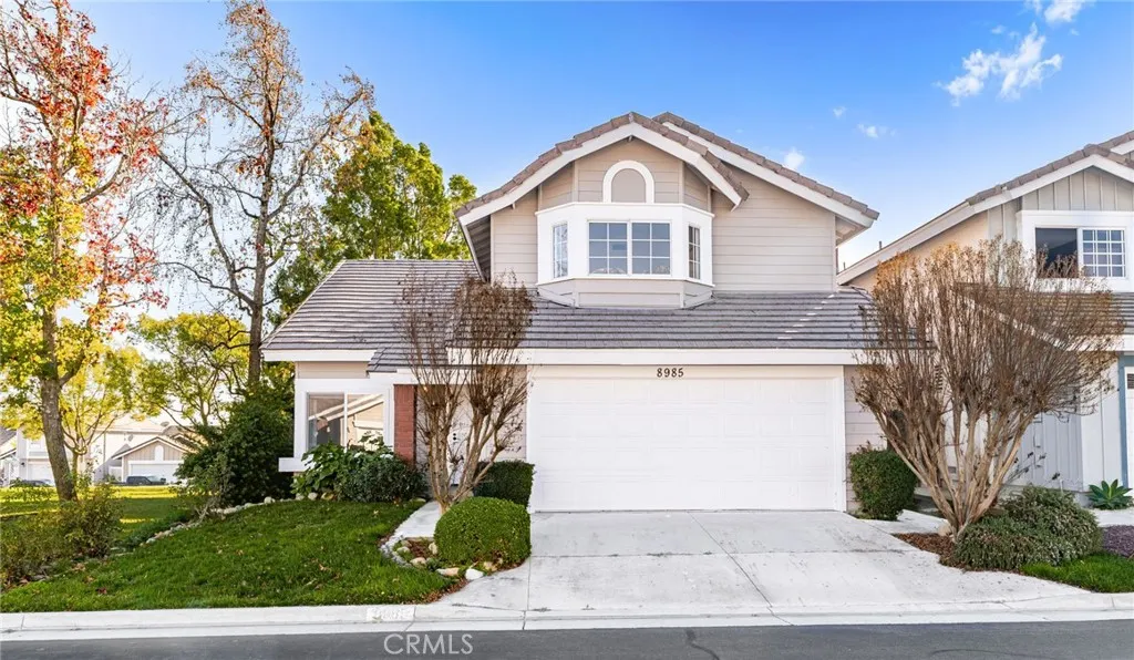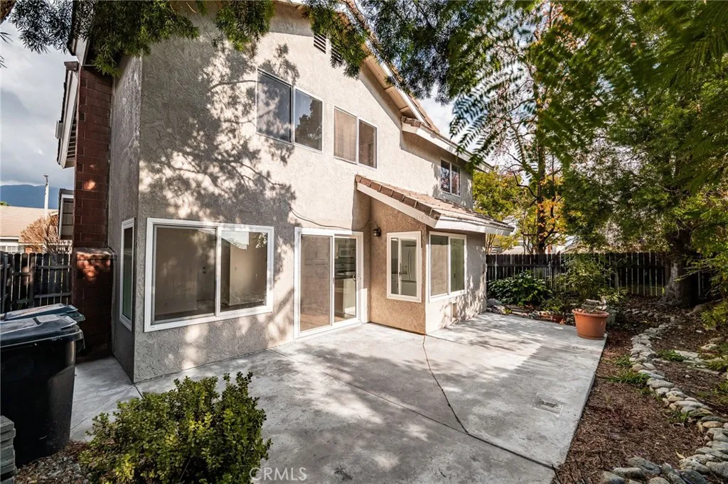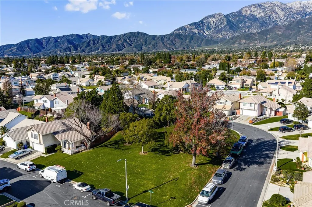 Welcome to 8985 Sage Drive, a beautifully updated 4-bedroom, 3-bathroom home tucked into one of Rancho Cucamonga's most secluded and desirable settings. This rare homesite sits beside a peaceful park, offering exceptional privacy, lush natural surroundings, and stunning mountain views. Step inside to soaring ceilings and an abundance of natural light. The home features brand-new laminate and tile flooring throughout, creating a fresh, modern feel from the moment you enter. The spacious kitchen is designed for both style and function, showcasing white hardwood cabinetry, new appliances including a double oven, and - yes - the refrigerator is included. The adjoining family room is warm and inviting, complete with a cozy fireplace perfect for relaxing evenings. Upstairs, the primary suite is a true retreat with a large bay window framing mountain views. The ensuite bathroom offers dual sinks, granite countertops, and an oversized walk-in shower. Three additional bedrooms provide generous space, laminate flooring, and ceiling fans for year-round comfort. Step outside to your private backyard oasis. Mature trees from the neighboring park create a serene, green backdrop with no neighbors directly behind. A large concrete patio offers ample room for outdoor dining, lounging, BBQs, or a firepit - whatever fits your lifestyle. Located within a master-planned community, residents enjoy a low HOA, community pool, park, and access to award-winning schools. With low taxes, excellent amenities, and a price positioned well below comparable homes, this is an incredible opportunity in a highly sought-after neighborhood. A private setting, modern upgrades, and unbeatable value - this home is a must-see and won't last long.