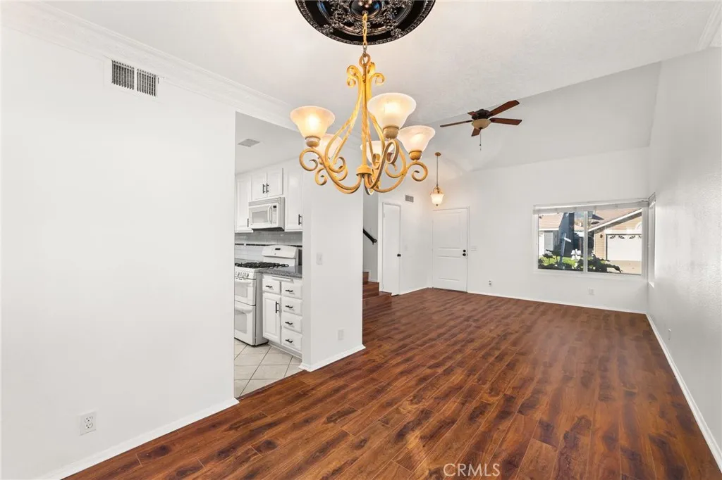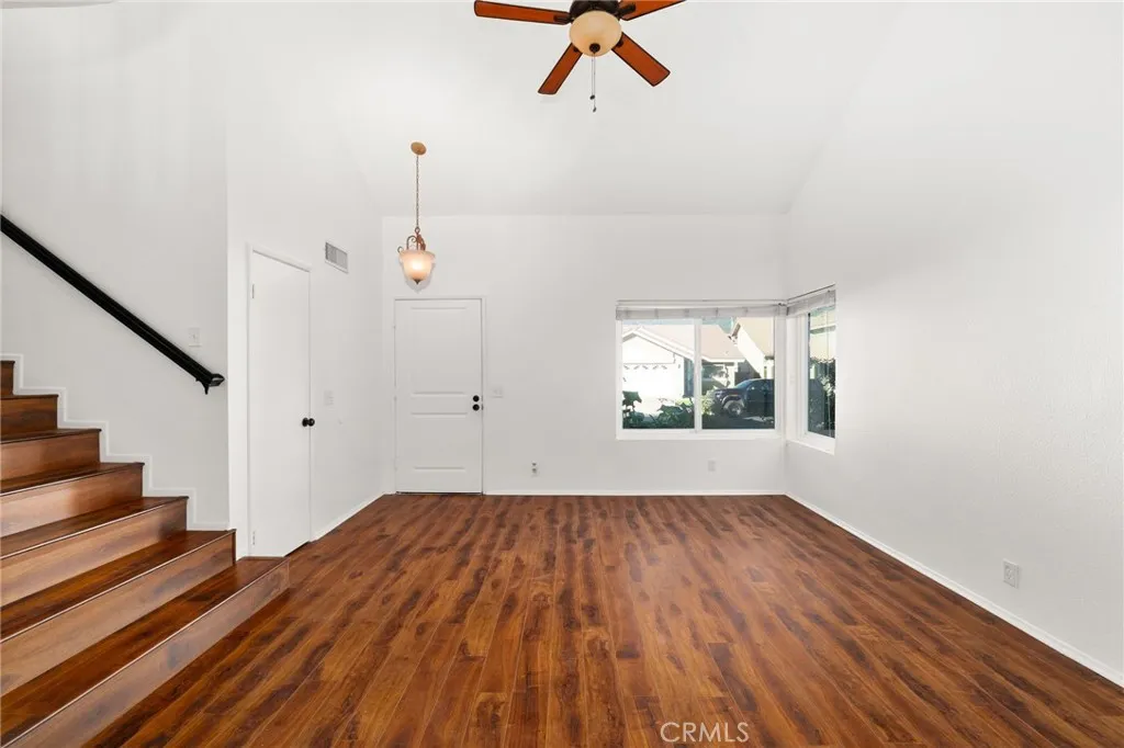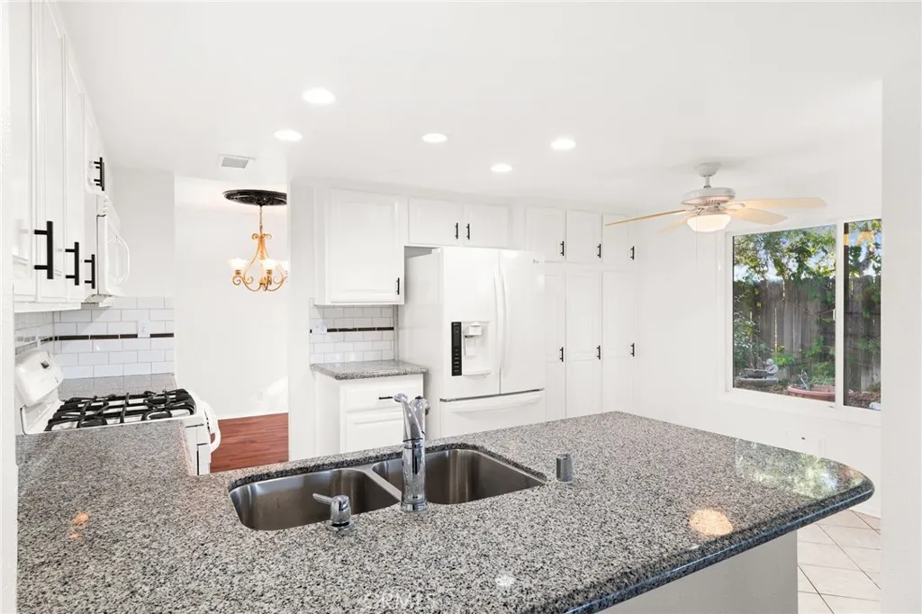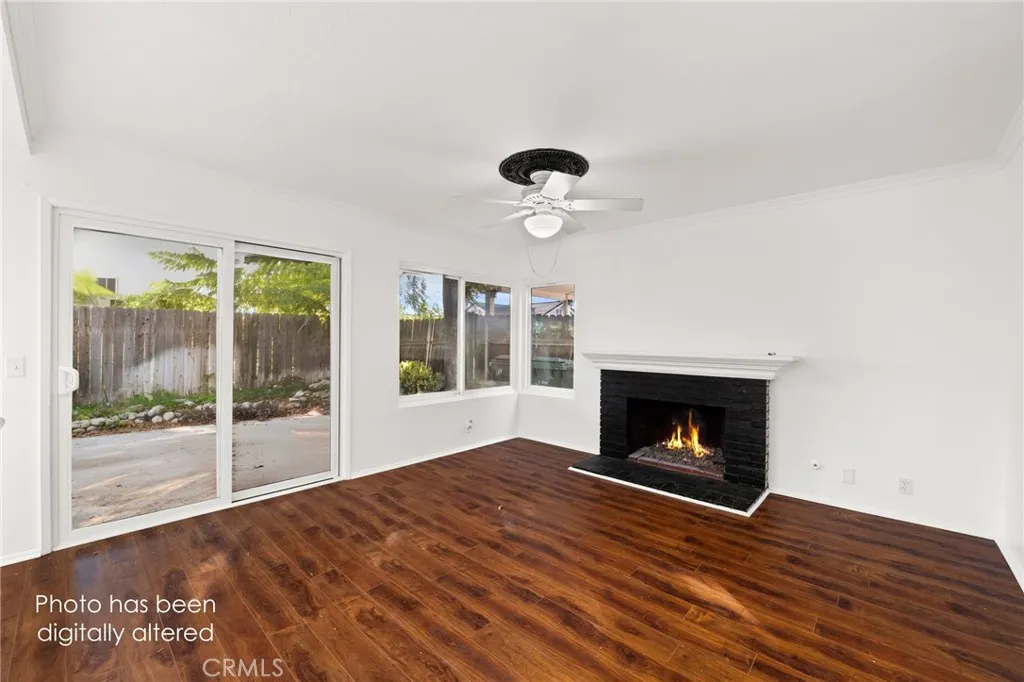 Welcome to 8985 Sage Drive, a beautifully updated 4-bedroom, 3-bathroom home tucked into one of Rancho Cucamonga's most secluded and desirable settings. This rare homesite sits beside a peaceful park, offering exceptional privacy, lush natural surroundings, and stunning mountain views. Step inside to soaring ceilings and an abundance of natural light. The home features brand-new laminate and tile flooring throughout, creating a fresh, modern feel from the moment you enter. The spacious kitchen is designed for both style and function, showcasing white hardwood cabinetry, new appliances including a double oven, and - yes - the refrigerator is included. The adjoining family room is warm and inviting, complete with a cozy fireplace perfect for relaxing evenings. Upstairs, the primary suite is a true retreat with a large bay window framing mountain views. The ensuite bathroom offers dual sinks, granite countertops, and an oversized walk-in shower. Three additional bedrooms provide generous space, laminate flooring, and ceiling fans for year-round comfort. Step outside to your private backyard oasis. Mature trees from the neighboring park create a serene, green backdrop with no neighbors directly behind. A large concrete patio offers ample room for outdoor dining, lounging, BBQs, or a firepit - whatever fits your lifestyle. Located within a master-planned community, residents enjoy a low HOA, community pool, park, and access to award-winning schools. With low taxes, excellent amenities, and a price positioned well below comparable homes, this is an incredible opportunity in a highly sought-after neighborhood. A private setting, modern upgrades, and unbeatable value - this home is a must-see and won't last long.