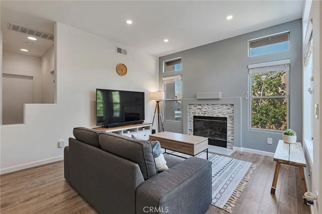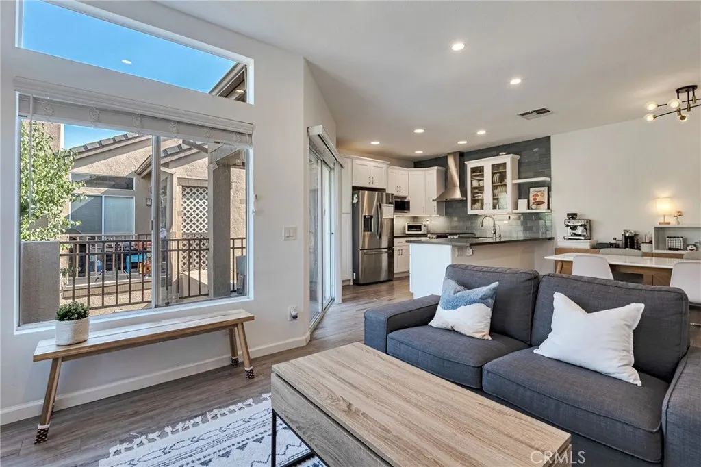 Experience stylish hillside living in the highly desirable Summit Court community of Anaheim Hills! This beautifully upgraded 2-bedroom, 2-bath home offers all living space on a single level, with a private ground-floor entry and direct access from the attached garage. A private staircase leads you to an inviting open-concept layout filled with natural light and elevated views. The spacious living room features a cozy fireplace and flows effortlessly into the dining area and remodeled kitchen - perfect for both everyday living and entertaining. The kitchen is outfitted with sleek stone countertops, a custom tile backsplash, stainless steel appliances, and abundant cabinetry. Step outside to the large balcony and take in sweeping vistas and fresh breezes. This home is move-in ready with features such as rich wood laminate floors, recessed lighting, window blinds, silhouette shades, and a crisp, modern feel that complements any d cor. Both bedrooms are generously sized. The primary suite includes a large walk-in closet and remodeled en suite bath, while the secondary bedroom is adjacent to a second upgraded bathroom with a walk-in shower. Laundry is conveniently located in the attached one-car garage, and an assigned covered carport adds extra parking flexibility. Ample guest parking is also available nearby. Enjoy resort-style amenities including a sparkling pool and spa, BBQ area, fitness room, and tot lot - all set against the backdrop of scenic hilltops. Ideally located near dining, shopping, trails, parks, golf, and with easy access to the 91 Freeway and 241 Toll Road, this is Anaheim Hills living at its best!