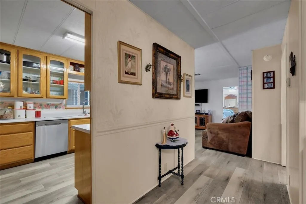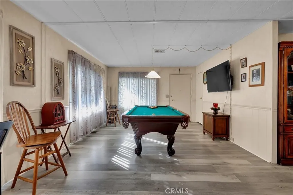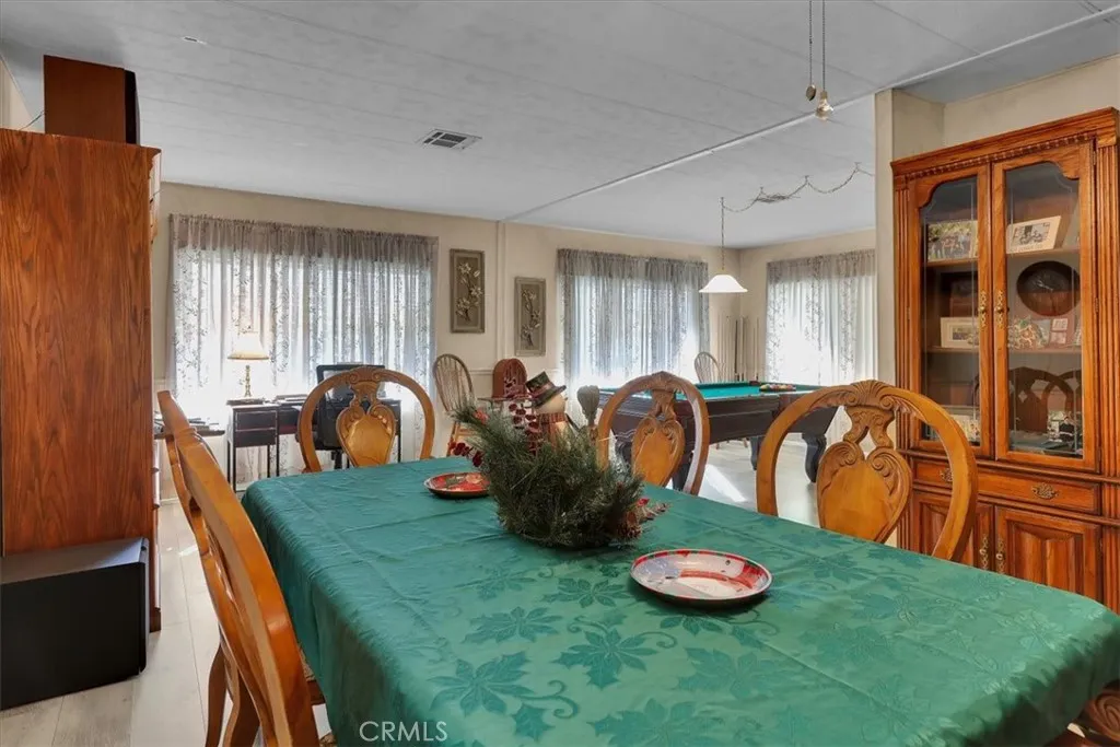 Welcome to this charming 2-bedroom, 2-bath, 1,344 sq ft home located in a beautifully maintained 55+ senior community. This spacious residence features a bright living room, a large dining area with built-in cabinetry, and a well-appointed kitchen with plenty of storage. The living room has been professionally reinforced to support the weight of a full-size pool table, making it perfect for entertaining or enjoying your favorite hobbies. The home also offers a covered carport, indoor laundry, and a low-maintenance yard with mature fruit trees. Clean, comfortable, and full of potential - this home is ready for its next owner to make it their own.