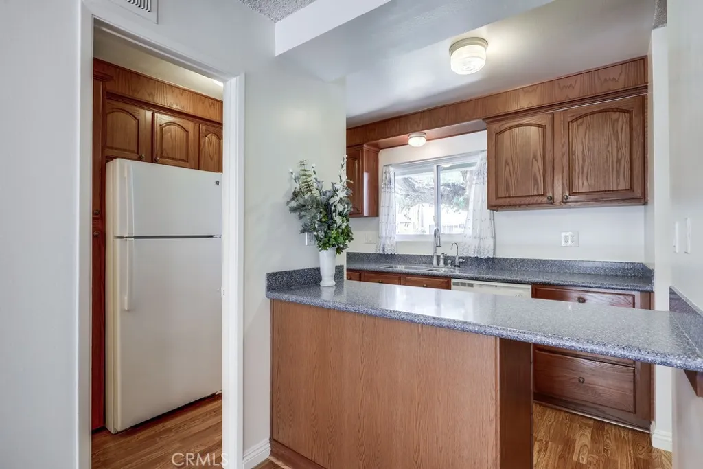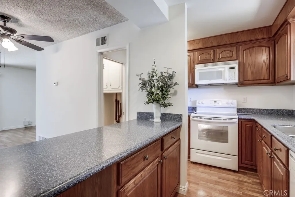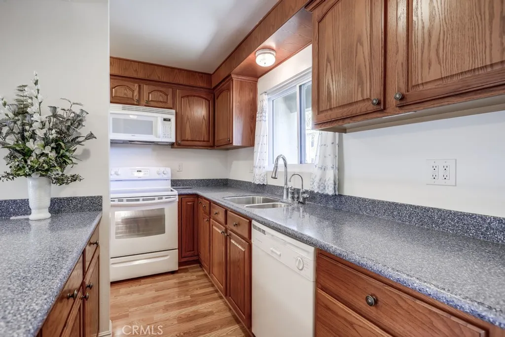 Location, location, location, the 3 most important features in real estate. Rare entry level townhome into this prestigious West Orange County neighborhood of multi-million-dollar homes. Rossmoor Townhomes within the Los Alamitos School District. Enjoy extra privacy in your end unit location with only one attached neighbor. Beautiful grass courtyard, huge shade tree, and soothing water fountain are all in your front yard. View of all from your kitchen window and from your 2nd floor primary bedroom balcony. Large back patio connects directly to double car enclosed garage with automatic openers and additional storage. Upgraded then well cared for home: windows, sliding door, downstairs flooring. Kitchen upgrades include the cabinets, appliances, countertops. Both bathrooms updated. New flooring upstairs, freshly painted throughout. Owner will consider $5,000.00 decorating allowance for new buyer to help them make this house their home.