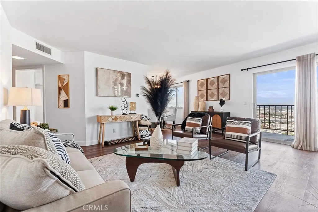 Bright, Airy Condo with Panoramic Views in Signal Hill. Perched at the top of the building, this one bedroom retreat delivers the kind of views that make you stop and stare (literally...) mountains, the Pacific Ocean, the Cal State Long Beach Pyramid, Disneyland fireworks, and sunrises that start your day with a wow. Inside, the open and airy floor plan features wood floors, a spacious bedroom with an en-suite bathroom and walk-in closet, plus a separate guest bath for convenience. The in-unit laundry closet makes life easy, and floor to almost ceiling sliding doors keep the home flooded with natural light. This unit includes two dedicated tandem parking spaces, private storage, and an EV charger. Bonus: the balcony is under repair and will be complete at closing. Step outside and stay active with the walking trails, parks, and scenic lookouts that make Signal Hill famous - Discovery Well Park, Hilltop Park, and Sunset View Park are right in your backyard. Not into outdoor workouts? The building has you covered with a gym, pool, and clubhouse. The location is central to everything: quick freeway access to the 405, 710, 605, and 22, and just minutes to the best of Long Beach - beaches, restaurants, shopping, and entertainment. Signal Hill also offers a tight knit community vibe, year round events, and that unbeatable Southern California climate where ocean breezes keep summers pleasant and winters mild. This is more than a home, it's a lifestyle with a view that can't be beat.