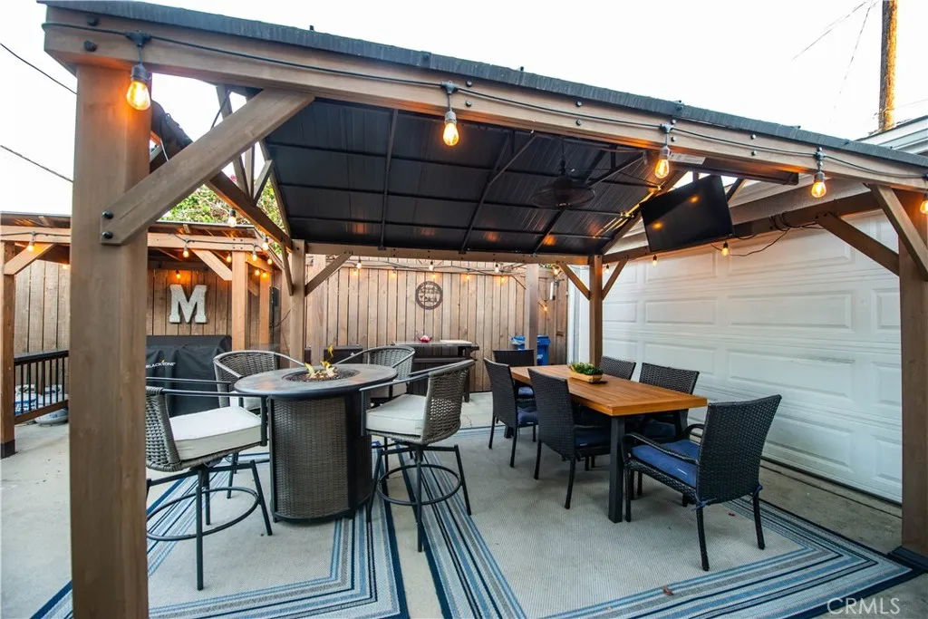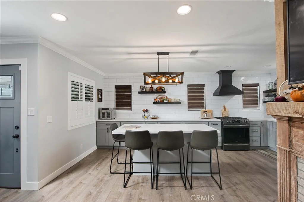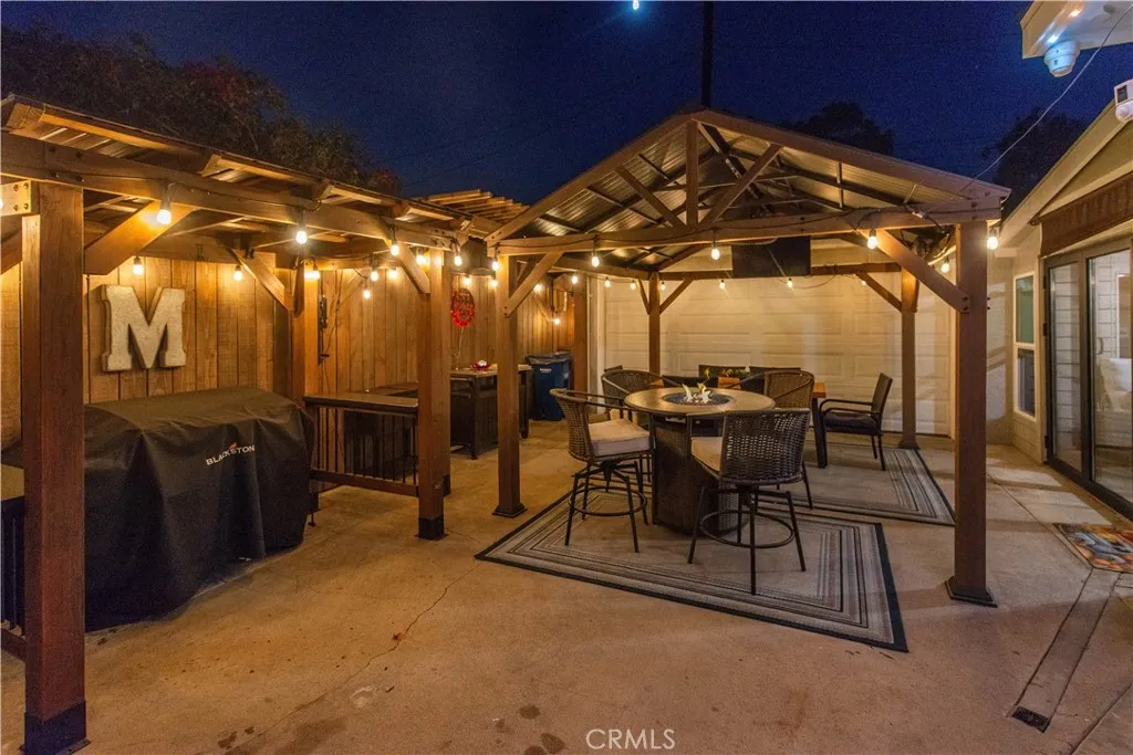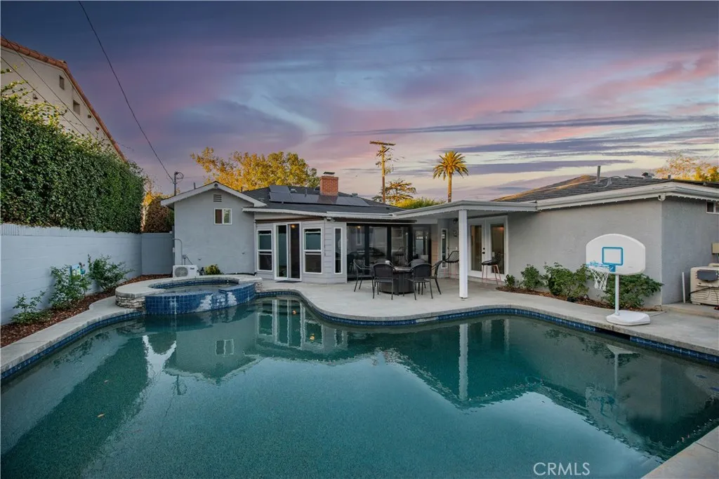 Welcome to this beautifully renovated single-story home located in Long Beach's highly desirable South of Conant neighborhood. Offering a total of 1,644 sq.ft. of living space, this property includes a thoughtfully upgraded main home, a versatile enclosed patio, and a garage converted into a fully functional studio.The main home offers 969 sq.ft. with 2 bedrooms and 2 bathrooms. From the moment you arrive, you'll be charmed by the home's inviting curb appeal, complete with a front porch, fresh exterior paint, newer windows and fascia board and beautifully landscaped front and back yards. A brand-new roof installed in 2025, updated gutters and downspouts, and a steel-framed driveway gate add to the home's durability and peace of mind. For year-round ambiance, the decorative lighting system, operated via wifi, illuminates both the front and back of the home. Inside, a warm and inviting interior highlighted by newer luxury vinyl flooring throughout, crown molding, high baseboards, recessed lighting, and plantation shutters. A cozy fireplace with a barnwood beam mantle anchors the living area. The custom kitchen is a true showstopper with a large center island, quartz countertops, subway tile backsplash, stainless steel appliances, modern cabinetry with pots-and-pan drawers, and a pantry with a built-in coffee station. The hallway bathroom is thoughtfully updated with a modern farmhouse-industrial style, decorative tile accents, and a sleek vanity, while one bedroom enjoys a private en-suite bath. Energy-efficient features include solar panels, newer tankless water heater, newer insulation, and a cool roof attic fan. Central heating and air conditioning ensure year-round comfort. The 315 sq.ft. enclosed patio expands the living space with accordion glass walls, shiplap accents, a modern fireplace heater, ceiling fans, and its own AC/heat split system - perfect for year-round enjoyment. The garage has been converted into a 360 sq.ft. studio complete with a bathroom, kitchenette with custom cabinetry, its own AC/heat split system, and dedicated laundry - ideal for guests, a private workspace, or rental potential. Step outside to your private backyard retreat with two pergolas, a covered patio, and a sparkling pebble tec pool and spa. Set on a tree-lined street close to shopping, dining, schools, and Long Beach Airport - with the beach and 405 freeway just minutes away - this home combines modern amenities, energy efficiency, and flexible living spaces.