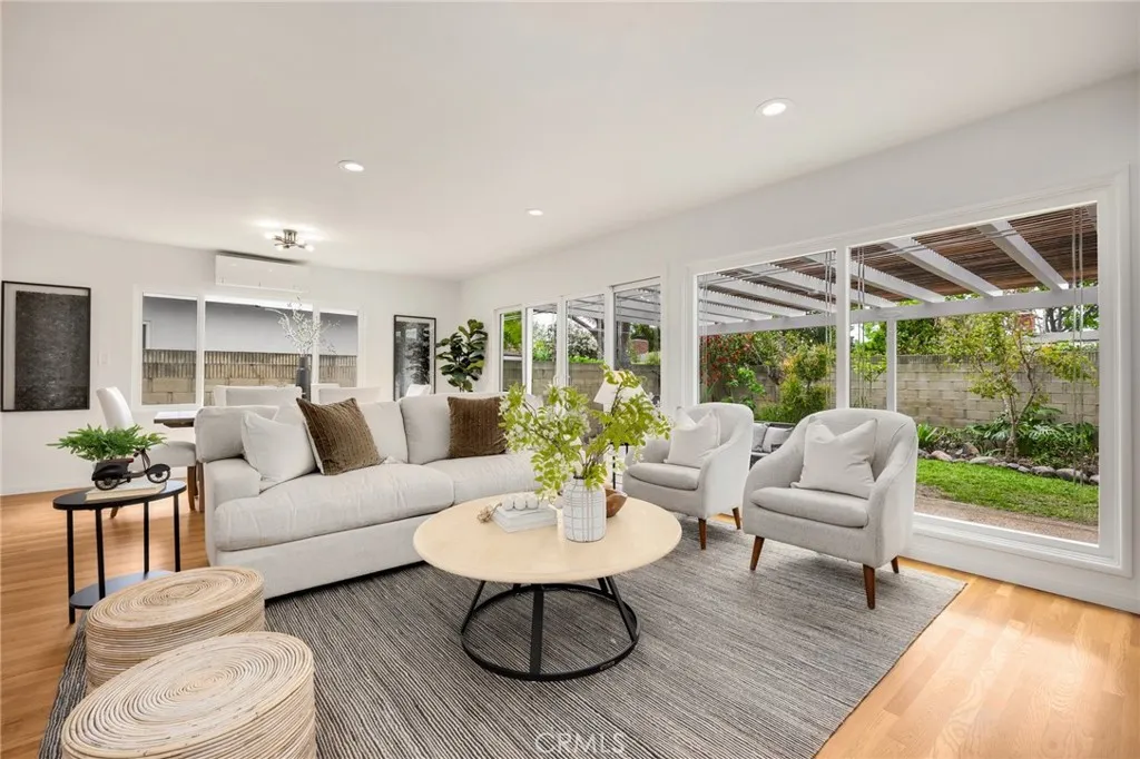 Welcome to your dream home with the perfect open concept floorplan that was reimagined with attention to detail, offering a seamless blend of comfort and sophistication. Situated in a serene setting with a south-facing orientation, this residence boasts views overlooking a covered patio and mature garden providing a tranquil escape right in your backyard with your indoor-outdoor living experience. The front landscape invites you to look closer. As you step inside, you'll be greeted by an abundance of natural light that fills the space, enhancing the welcoming ambiance throughout. The open layout effortlessly connects the main living areas for both entertaining guests and everyday living. The living room has oversized windows to the patio and a marble fireplace. Adjacent to the living area is a chef's kitchen, complete with modern appliances, ample counter space, and sleek cabinetry, providing both functionality and style. The kitchen features beautiful wood cabinetry, quartz counters, an oversized island with prep sink, breakfast bar, and abundant cabinets. There are also rollout drawers, Stainless refrigerator with bottom freezer, dishwasher, stove, oven range, and built-in microwave. There is an electric skylight and a large garden window over the sink that lets additional light in. The dining area offers the perfect spot to gather for family meals or intimate dinners, with sliding glass doors allowing for seamless indoor-outdoor flow. Step outside onto the patio, where you'll find yourself surrounded by mature landscaping, creating a private retreat where you can savor the beauty of nature in peace. Retreat to the primary bedroom with ceiling fan and walk in closet with built custom built ins and a tasteful modern en-suite bathroom to wake up to! The main bathroom has a large vanity and tasteful tile. Both bathrooms have oversized shower glass. More features to note: Entry custom cabinets, hardwood flooring, recessed lighting, some new fixtures, copper plumbing ,split unit in dining area provides cooling and heating for the living area, Upgraded electric to 220, indoor laundry closet and cabinets, freshly painted inside and out, dual pane windows, termite fumigation and wood repairs completed. This home offers more than just a place to live it offers a lifestyle of spacious comfort and tranquility. This is truly a rare find that must be experienced to be appreciated!